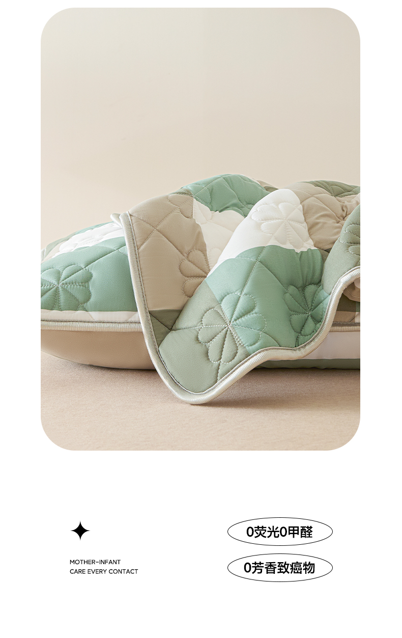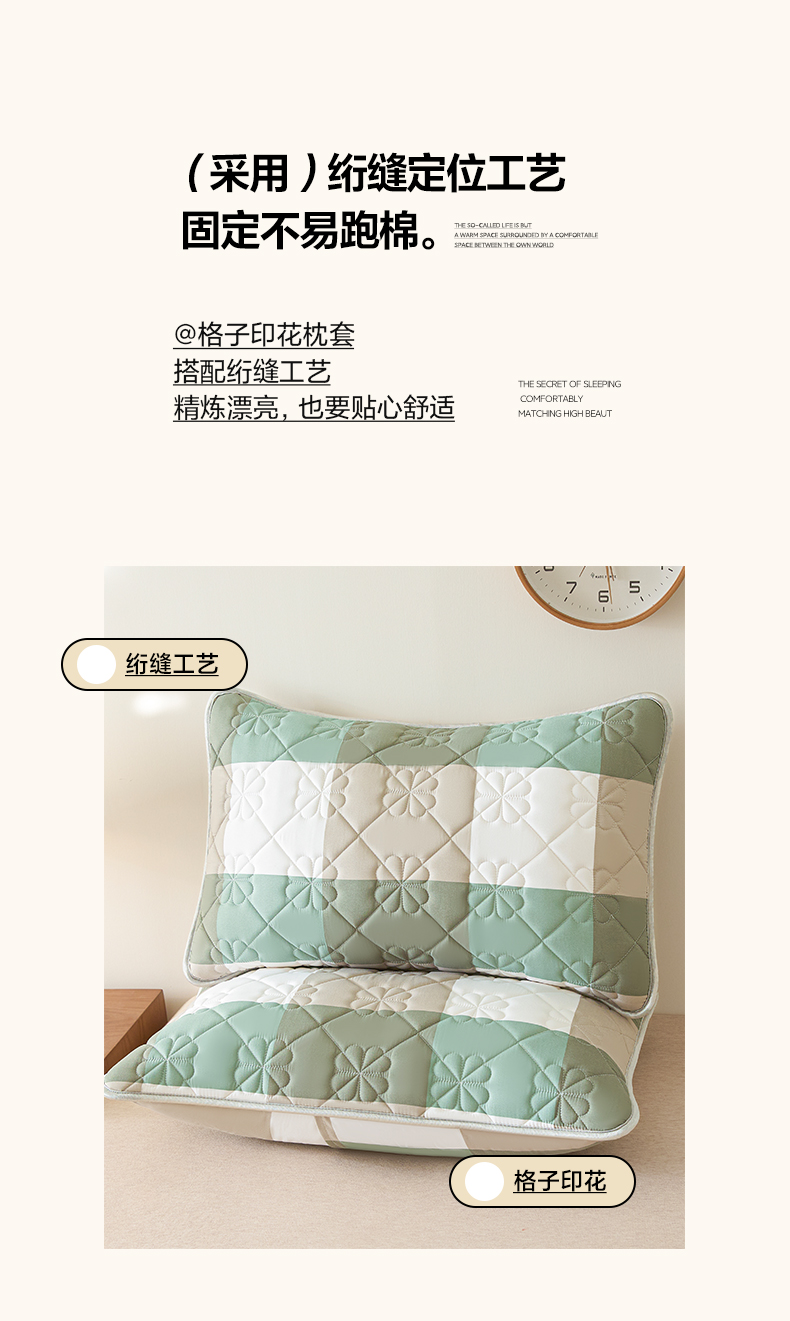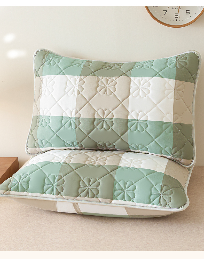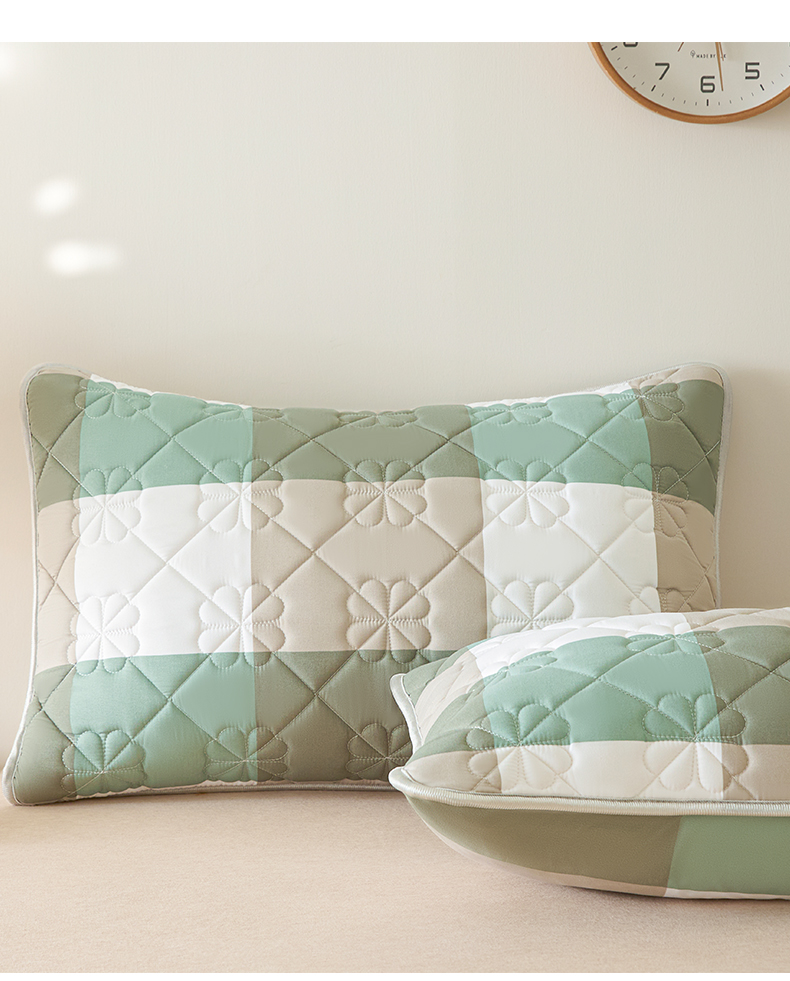 商品名称:芬晴家纺 2025新款A类大豆夹棉格子枕套单件单枕套防口水头油 绿大格
