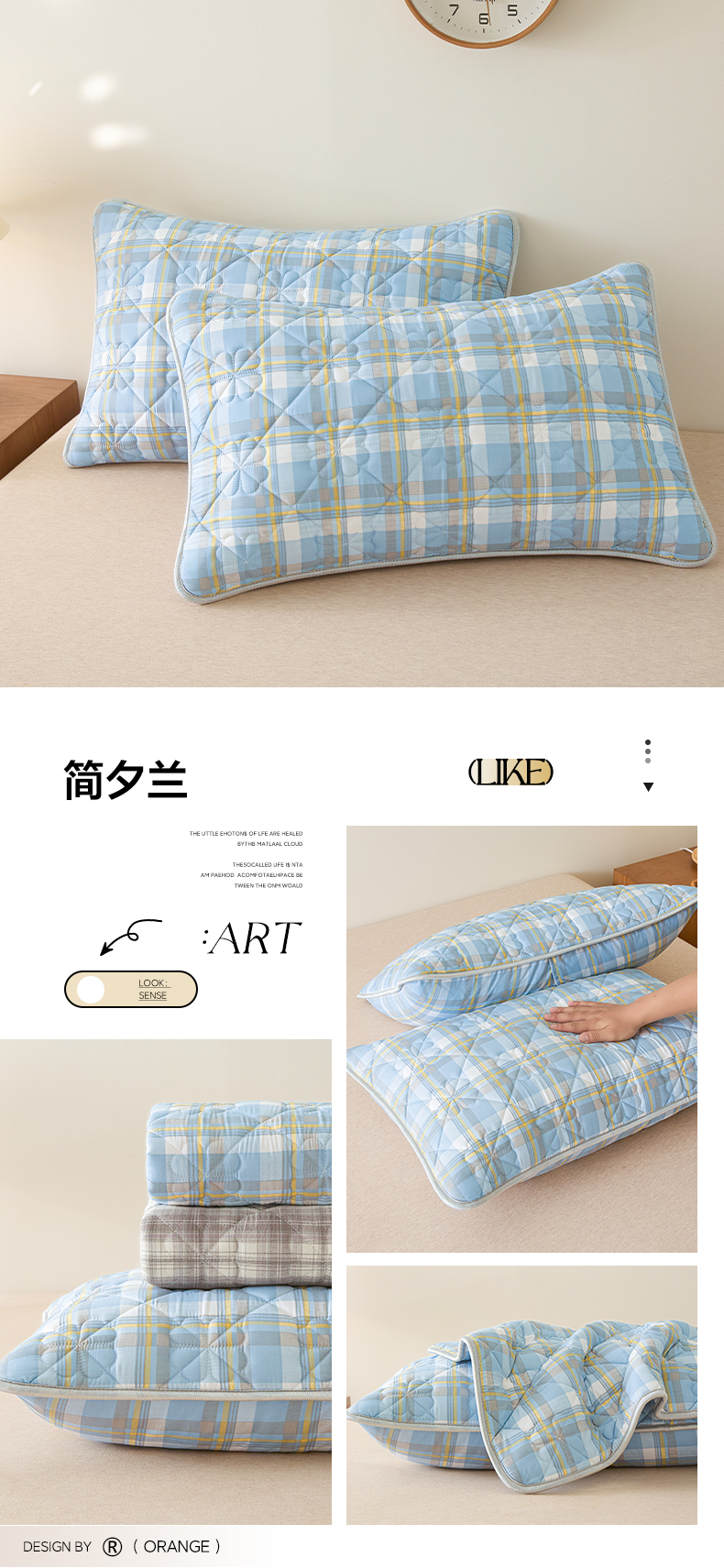 (总)芬晴家纺 2025新款全棉色织棉花枕套,本色,经典格,诺卡,清风-粉,清风-灰,清风-兰,日常