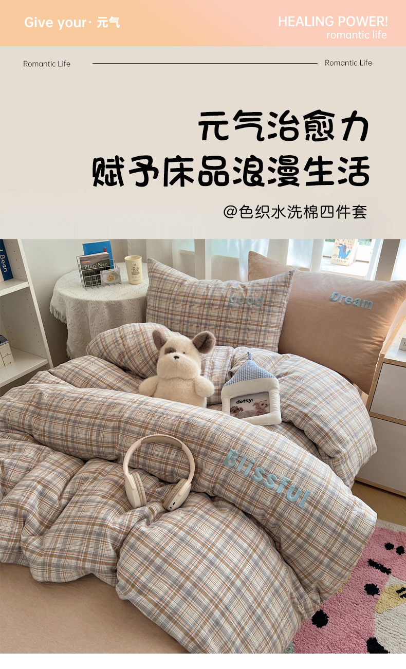 当前位置: 91家纺网 > 商品网购 > 床品套件 > 四件套 > 水洗棉四件套 > 丽涵家纺 2025新款全棉纯棉色织水洗棉刺绣三件套四件套 青春