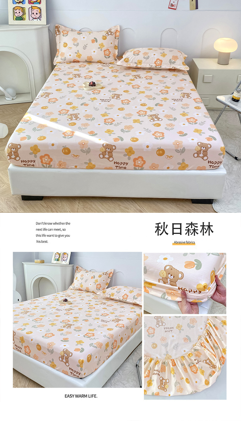 小叮当家纺仓储工厂店 (爆款花型 长期款 不断货)2025年新款条纹卡通花卉纯棉全棉床笠三件套 莫兰迪