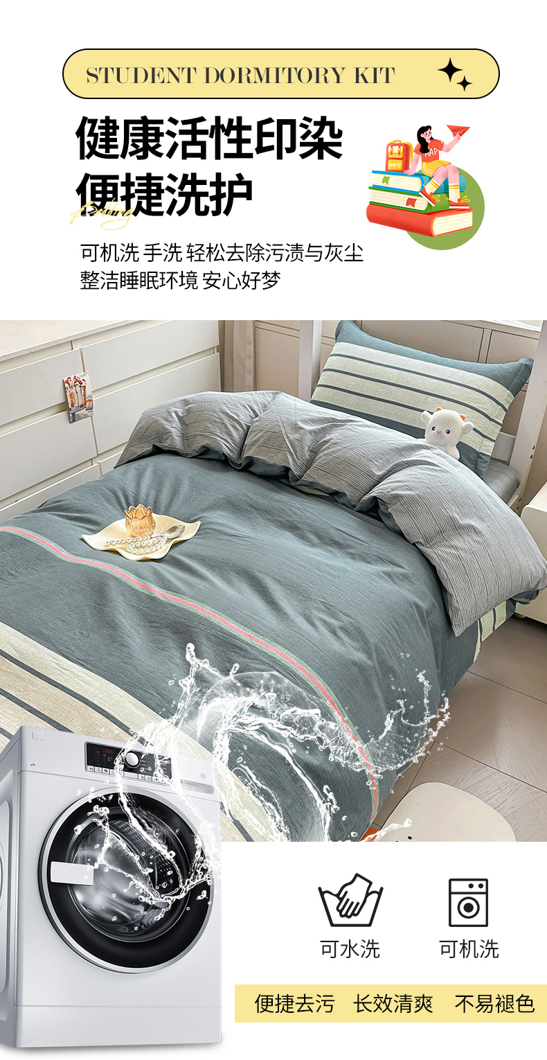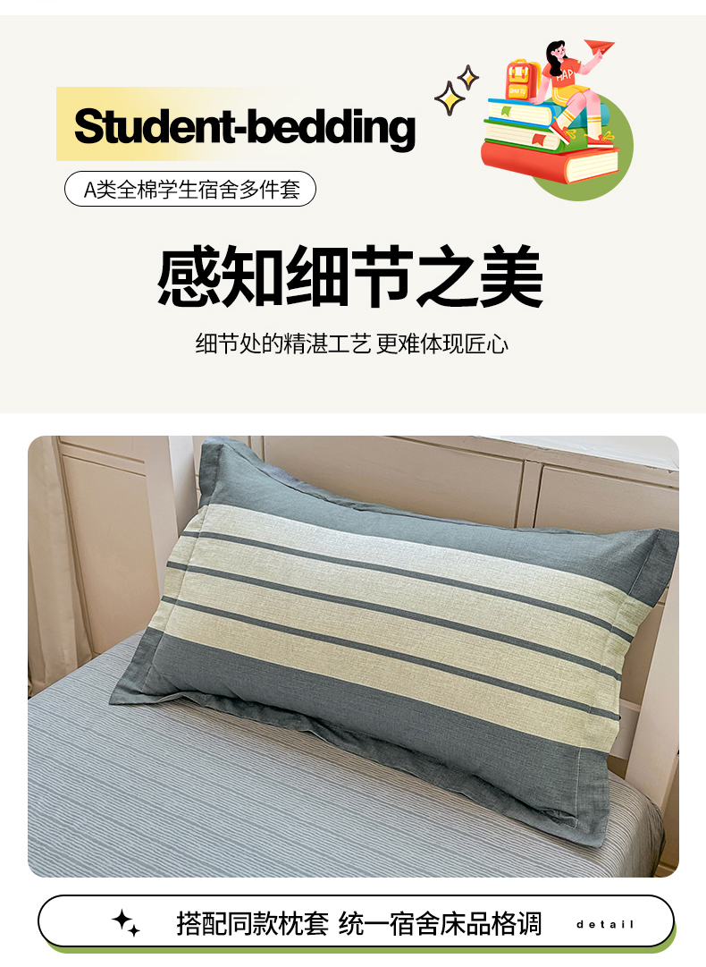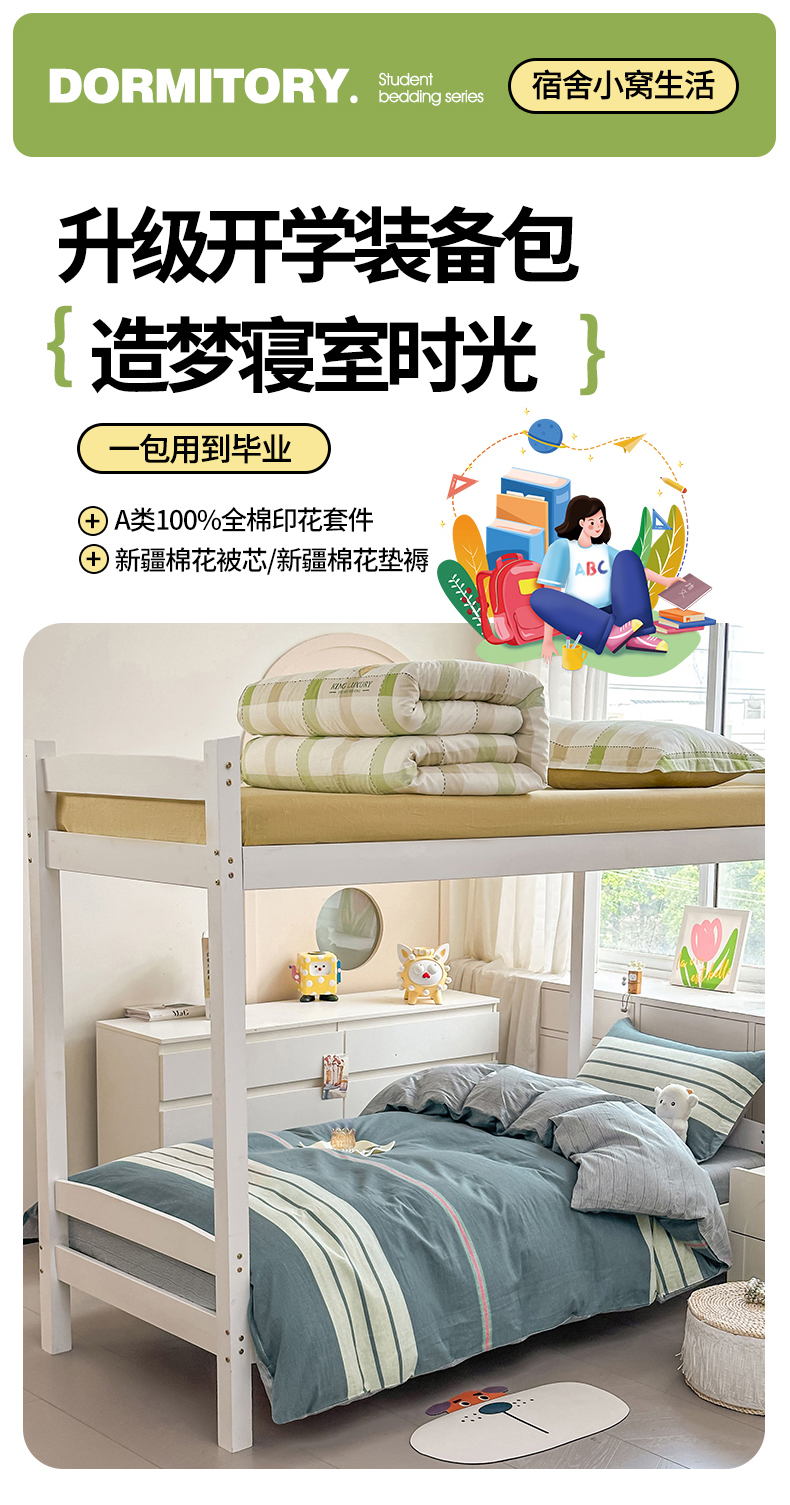 西域种棉人·千百笠 2025新款全棉纯棉六件套大学生宿舍100%新疆棉花被子被褥一整套枕头床垫三件套 时尚条纹