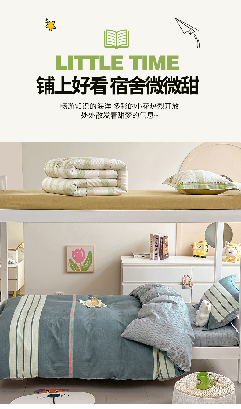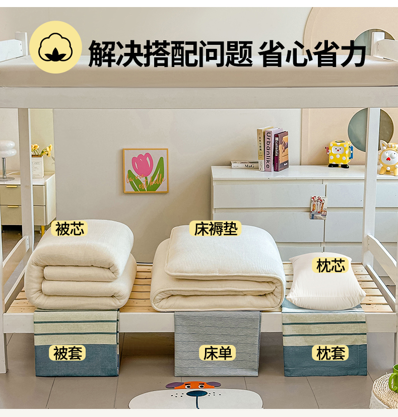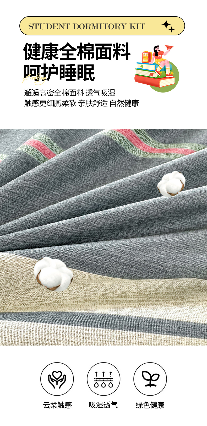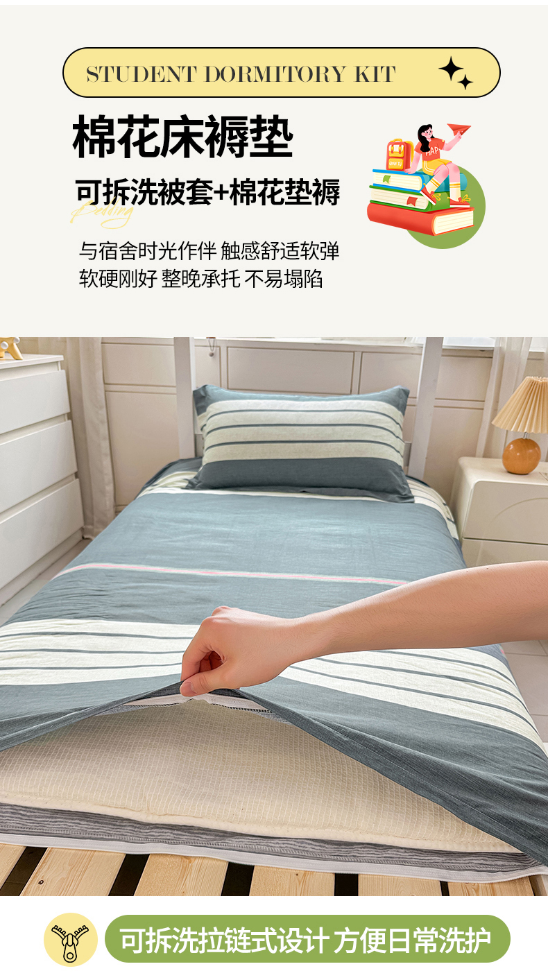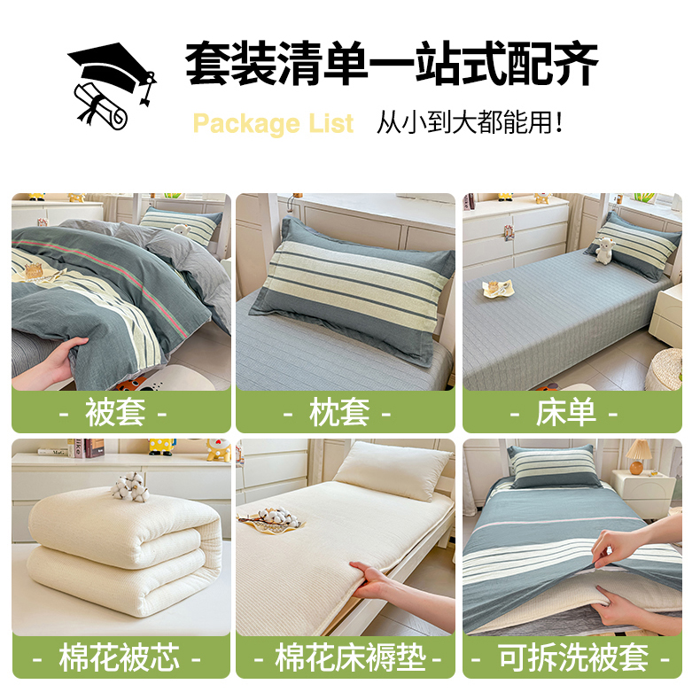 商品名称:西域种棉人·千百笠 2025新款全棉纯棉六件套大学生宿舍100%新疆棉花被子被褥一整套枕头床垫三件套 时尚条纹