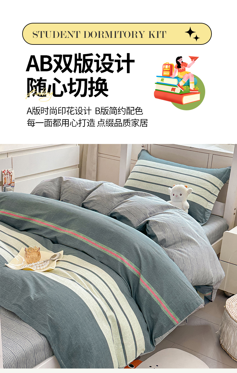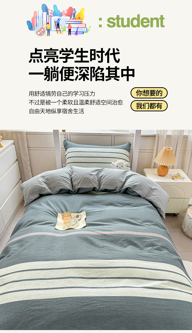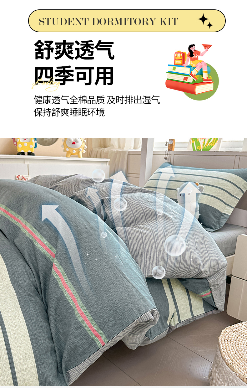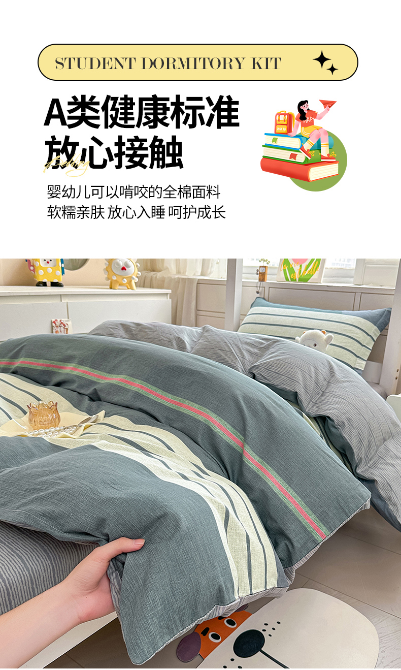 商品名称:西域种棉人·千百笠 2025新款全棉纯棉六件套大学生宿舍100%新疆棉花被子被褥一整套枕头床垫三件套 时尚条纹