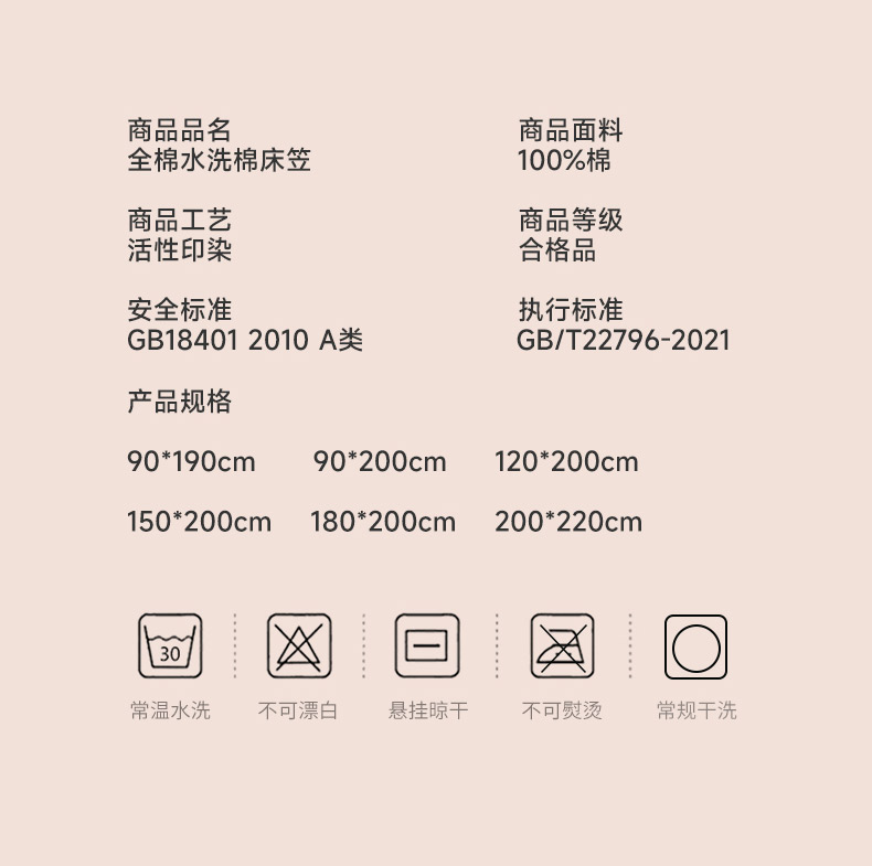 180x200cm单床笠(适合1-30cm床垫) | ¥48.00 |