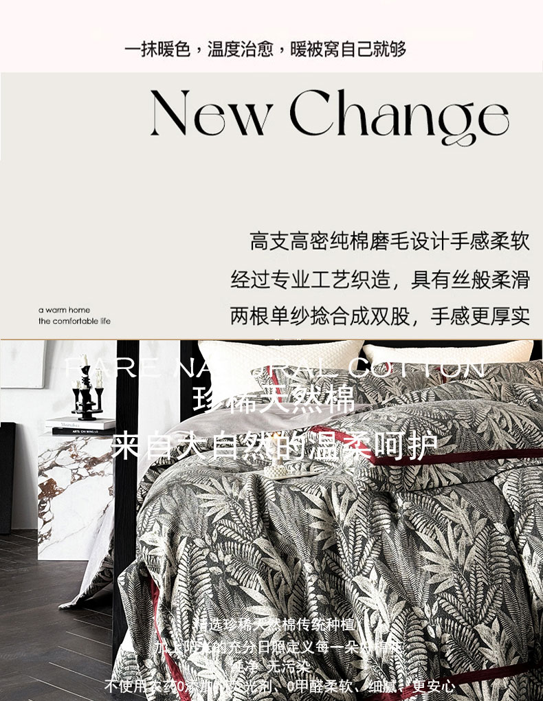 (总)蒂爵 2025新款居家长绒棉提花四件套南法佳人系列,薄荷绿,贝壳粉,高级灰,香槟金