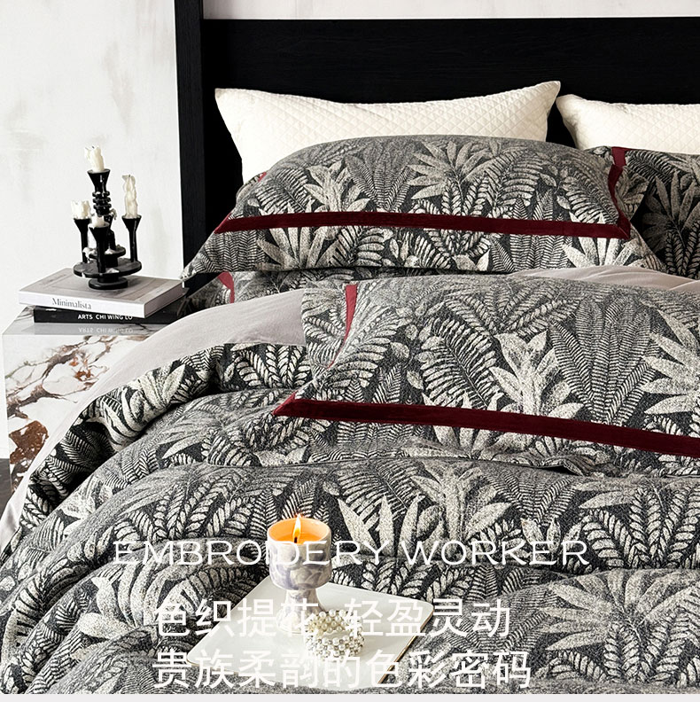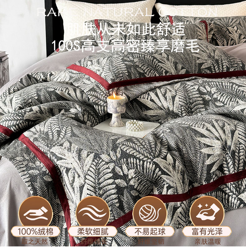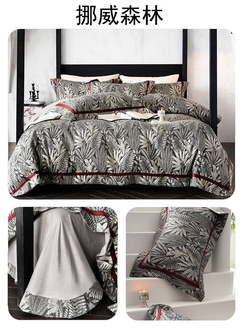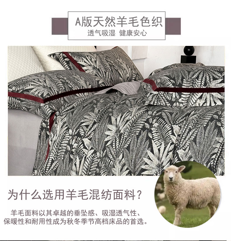 商品名称:蒂爵 2025新款A版羊毛混纺、b版新疆长绒棉时尚秋冬四件套-挪威森林 挪威森林-黑