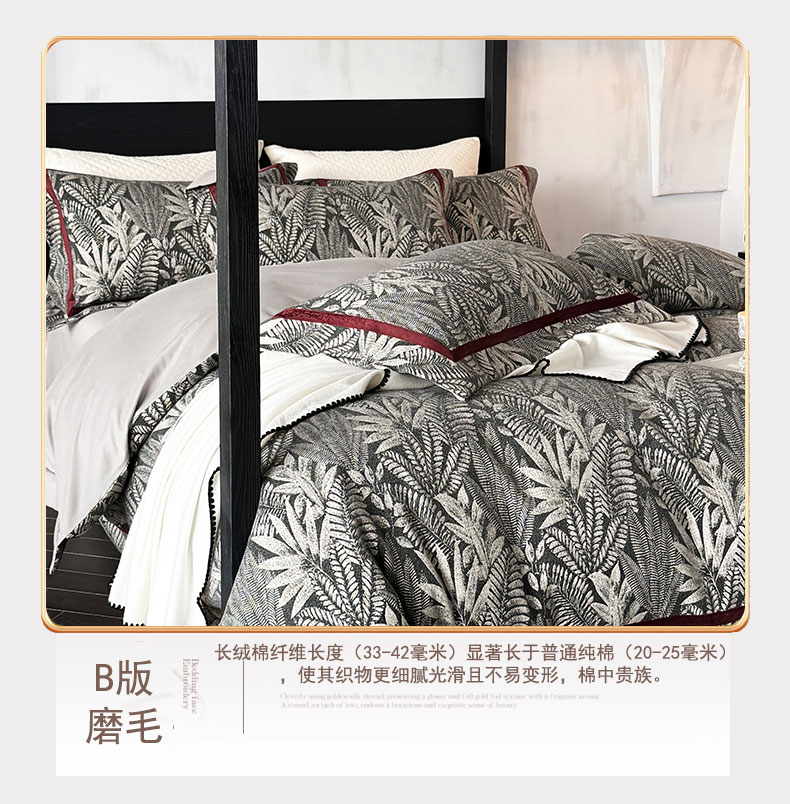 蒂爵 2025新款A版羊毛混纺、b版新疆长绒棉时尚秋冬四件套-挪威森林 挪威森林-黑