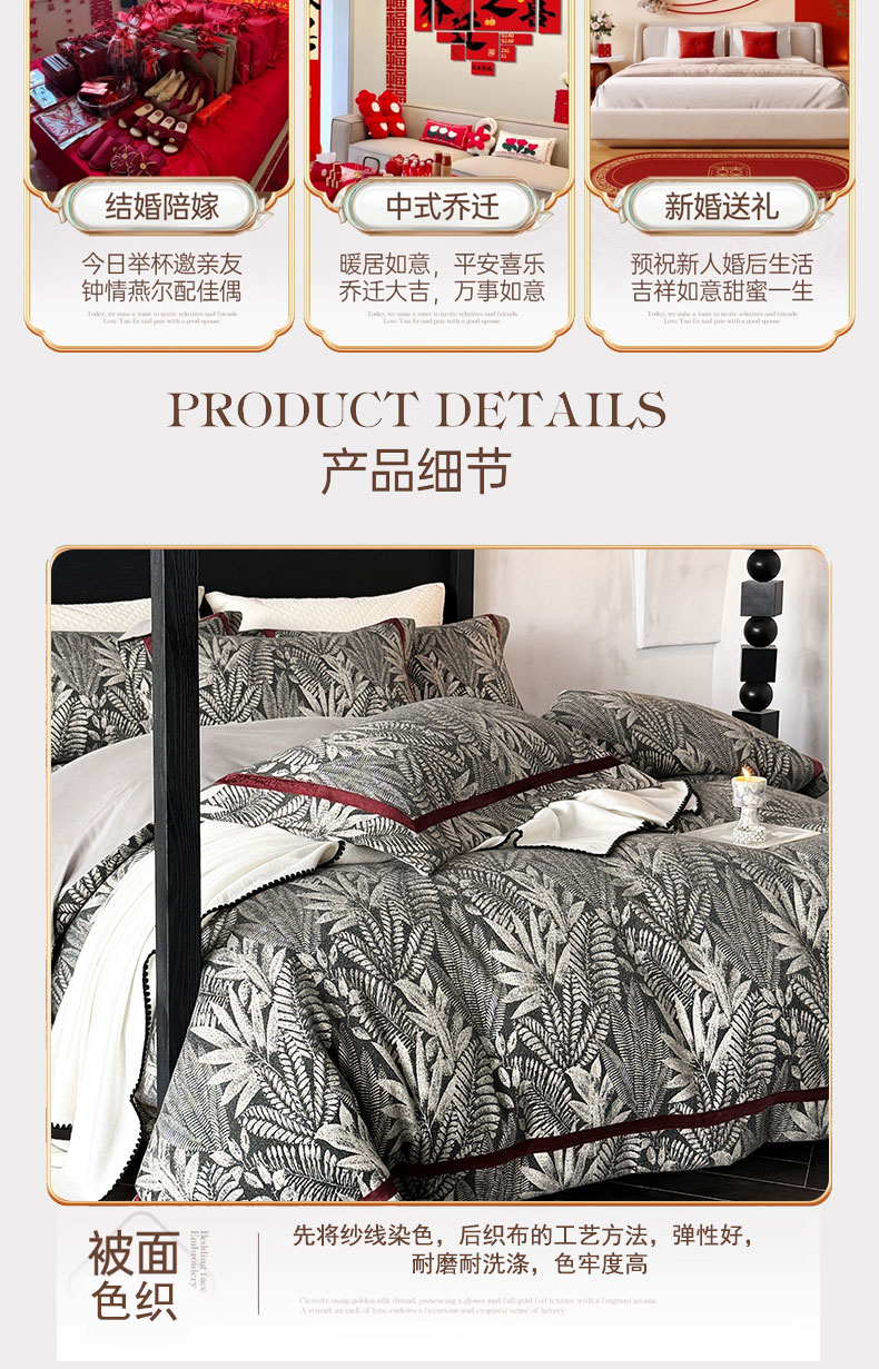 (总)蒂爵 2025新款婚庆长绒棉时尚小红书爆款刺绣婚庆四件套多件套-提花款,欢天喜地,玫瑰之恋,喜福临门,喜上眉梢,幸福嫁到