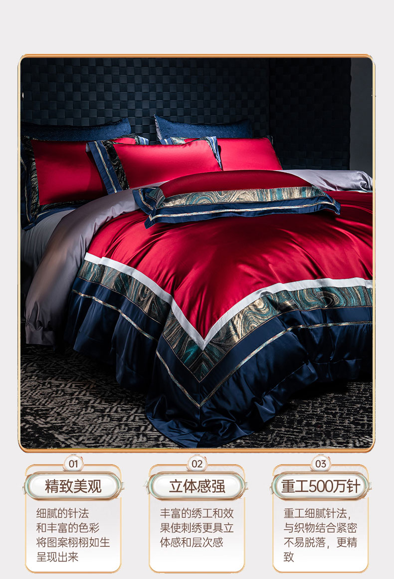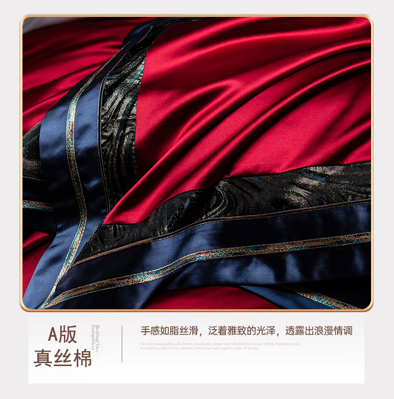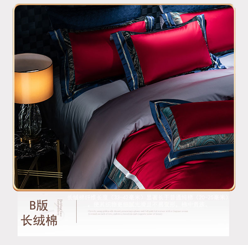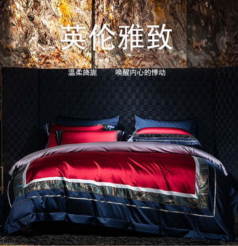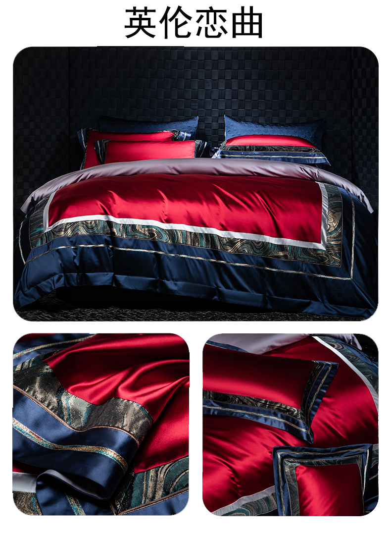 商品名称:蒂爵 2025新款A版真丝棉b版新疆长绒棉时尚高端四件套-英伦雅致 英伦雅致-红