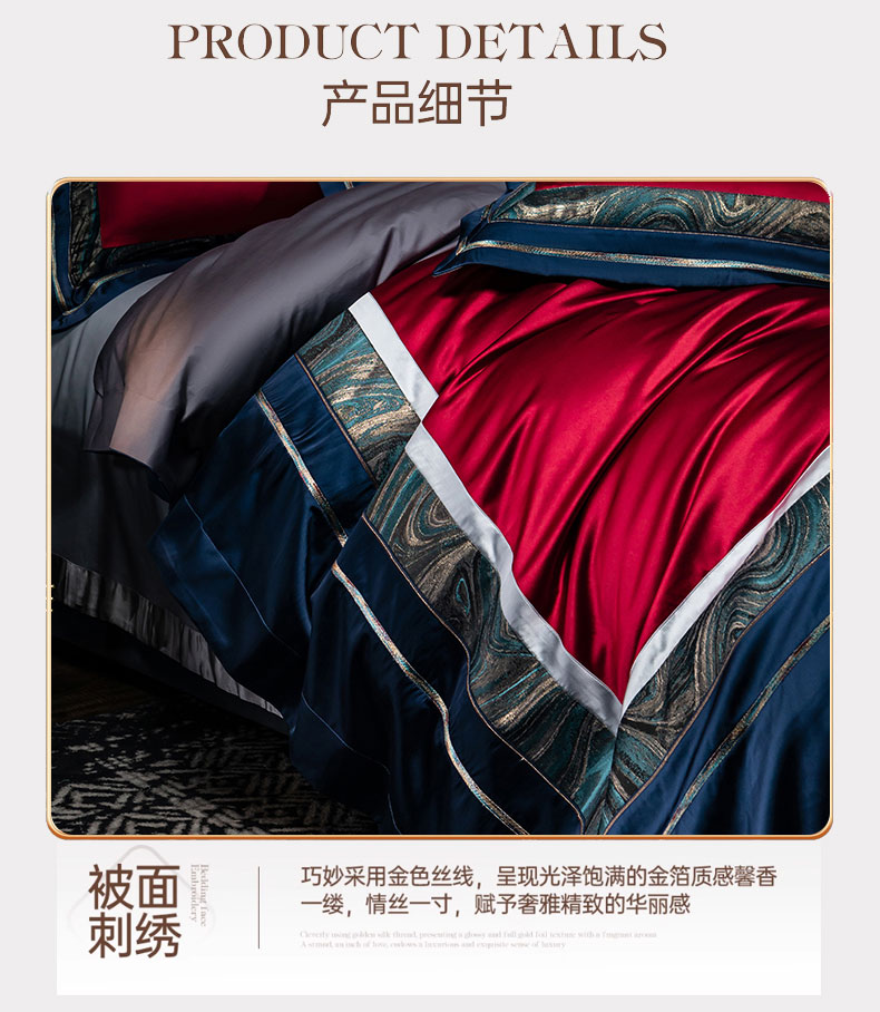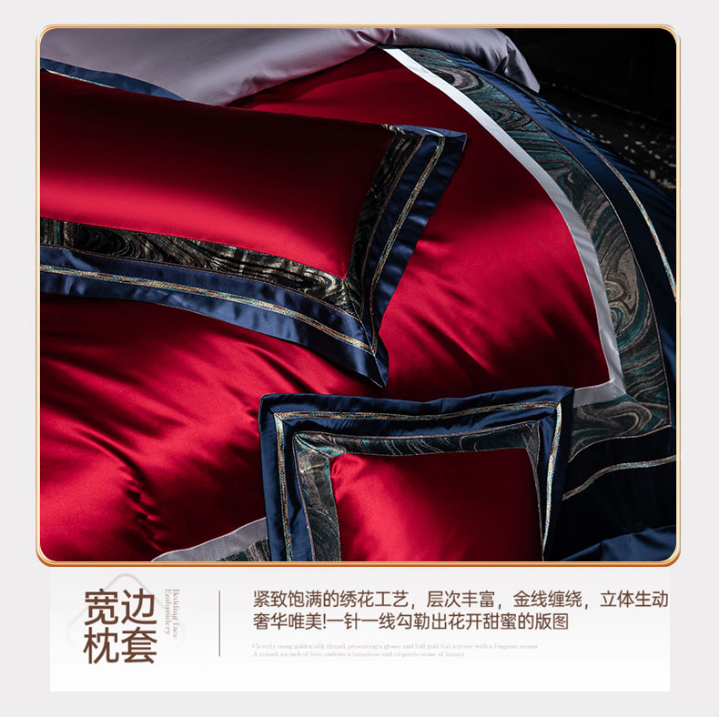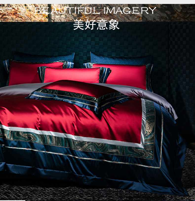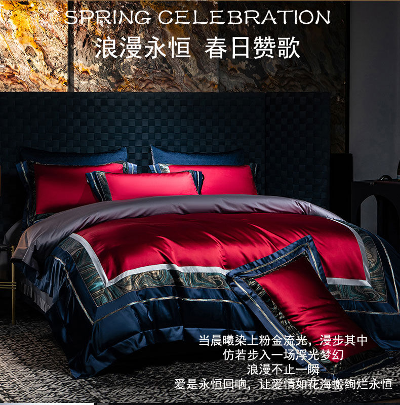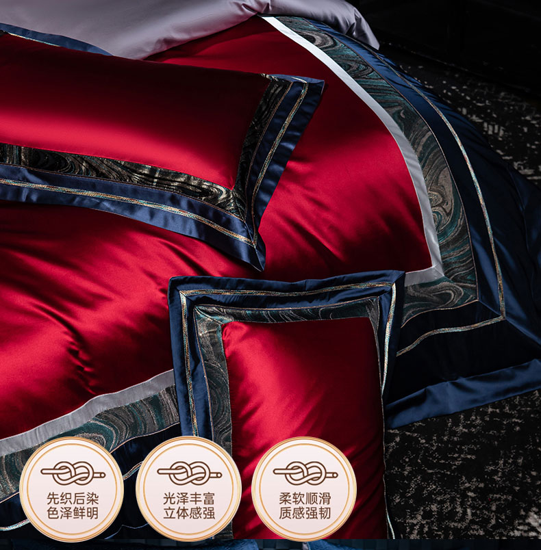 商品名称:蒂爵 2025新款A版真丝棉b版新疆长绒棉时尚高端四件套-英伦雅致 英伦雅致-红