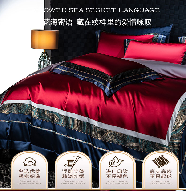 (总)蒂爵 全棉纯棉长绒棉大绣花婚庆四件套,家业兴旺,缘来是你,百花贺喜,玫瑰爱恋,玫瑰爱恋金,情意绵绵