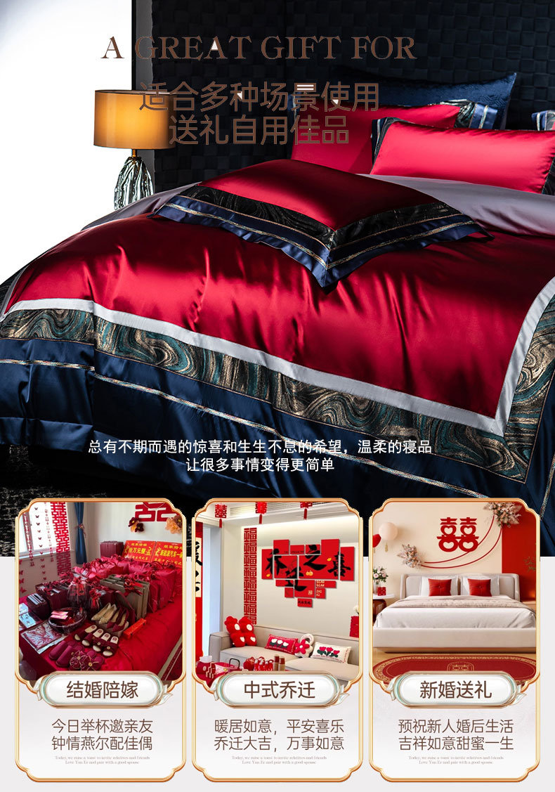 (总)蒂爵 全棉纯棉提花顶奢重工绣花工艺款婚庆四件套多件套,龙凤传奇,禧龙禧凤,缘定江山,挚爱一生