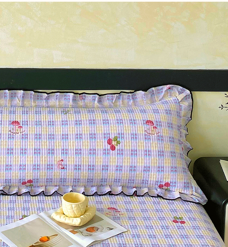 商品名称:雨彤家纺 2025新款A类公主风云感双层纱夹棉加长花边款枕套 森田原野-公主风