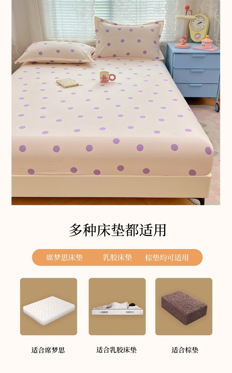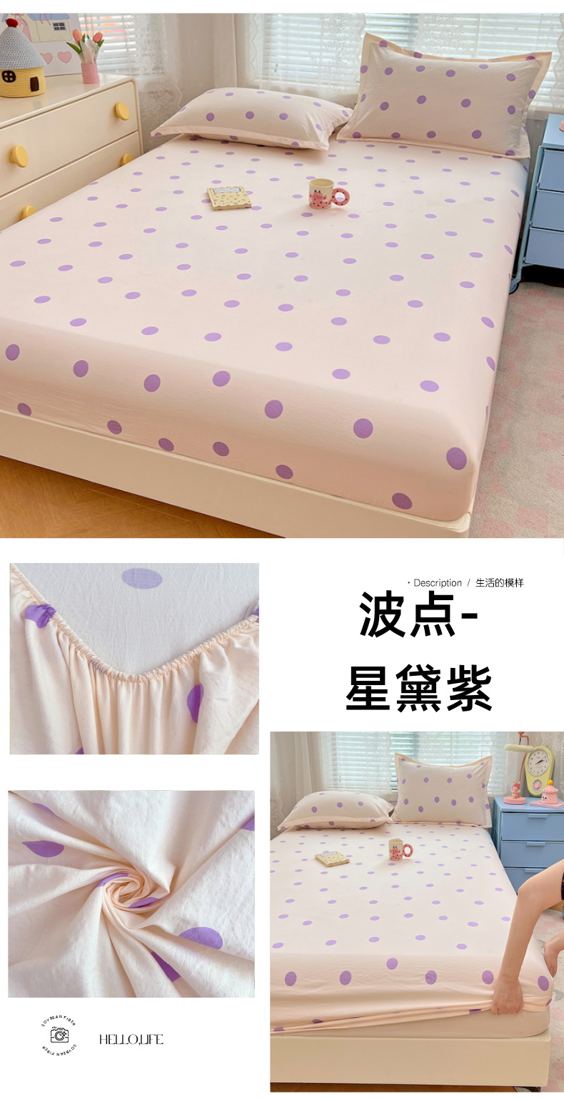 • 91家纺网 家纺一手货源 找家纺 梦舒羽 2025新款双层纱床笠机洗家用防滑透气床罩床垫床单保护套-缤纷波点 波点-星黛紫