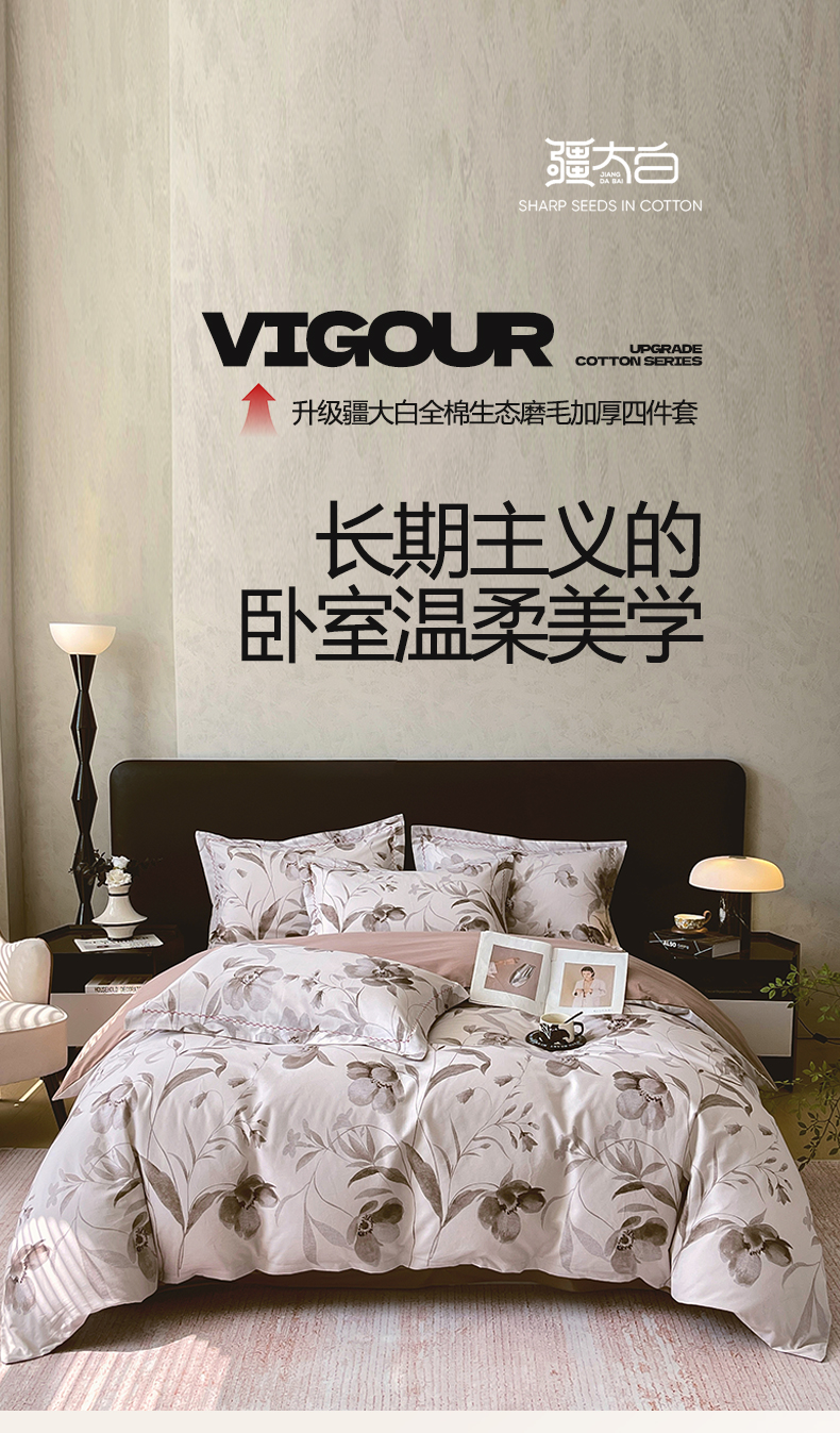 慕希家纺 2025新款疆大白全棉纯棉加厚生态磨毛四件套 知茵-咖