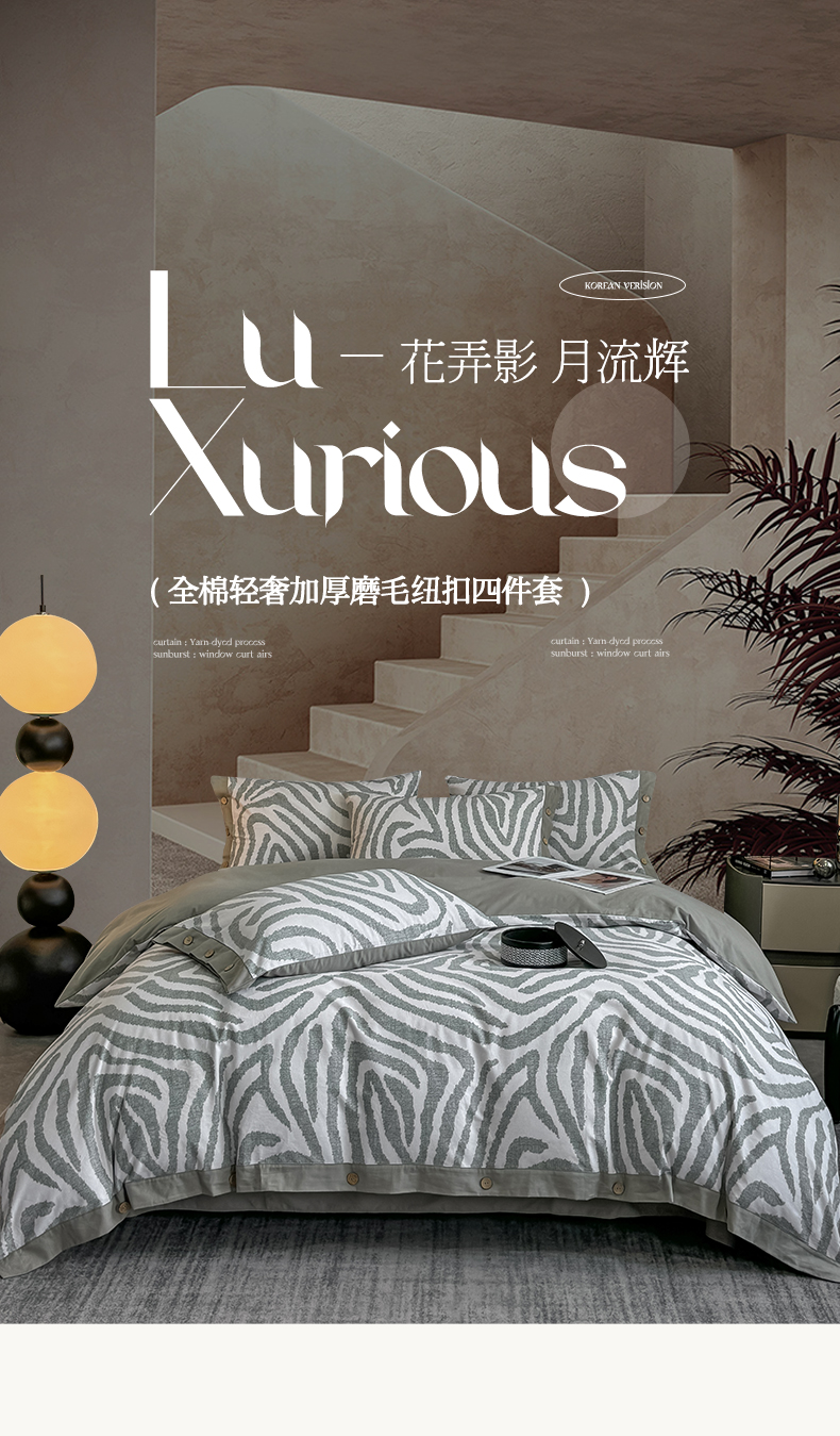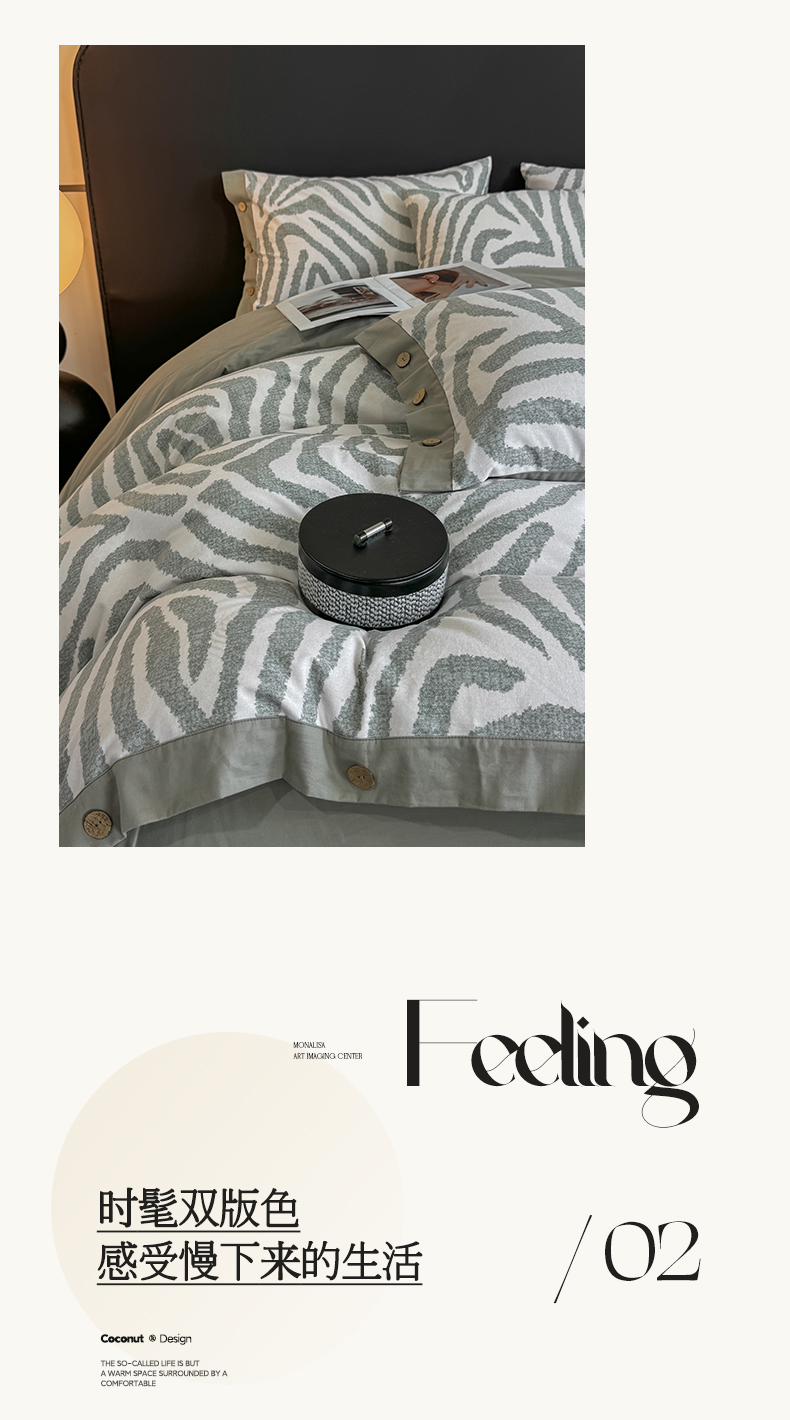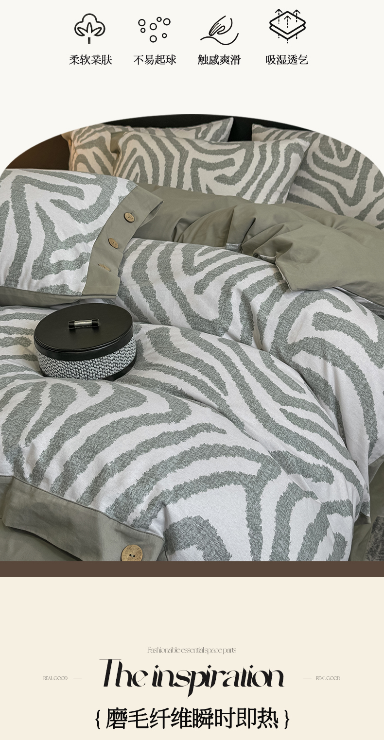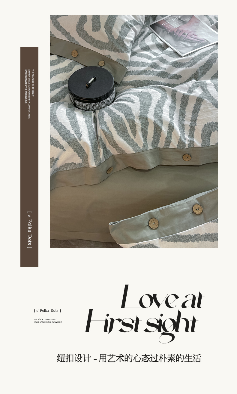 慕希家纺 2025新款全棉纯棉轻奢加厚磨毛纽扣款四件套 马德里-绿