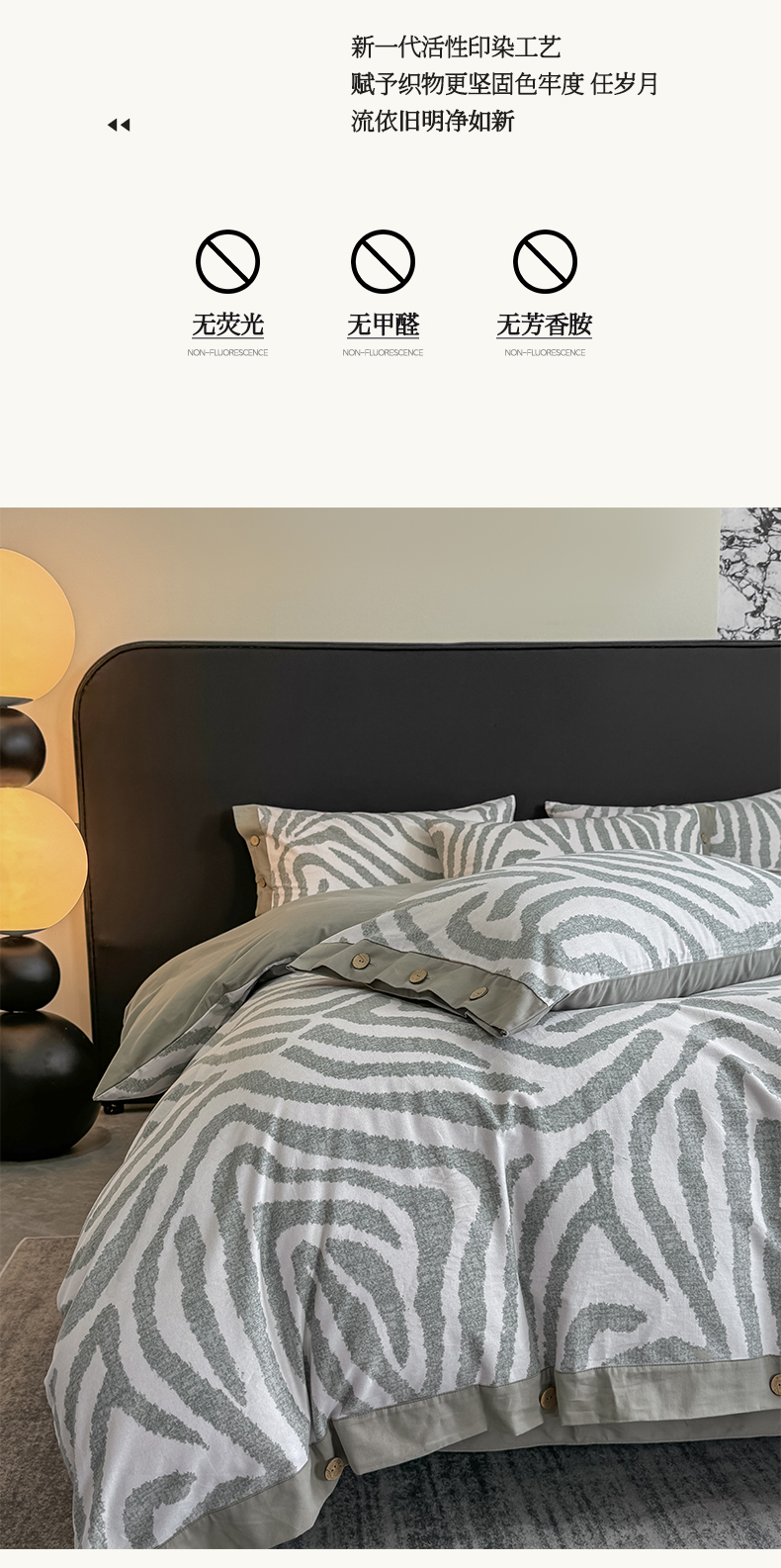 商品名称:慕希家纺 2025新款全棉纯棉轻奢加厚磨毛纽扣款四件套 马德里-绿