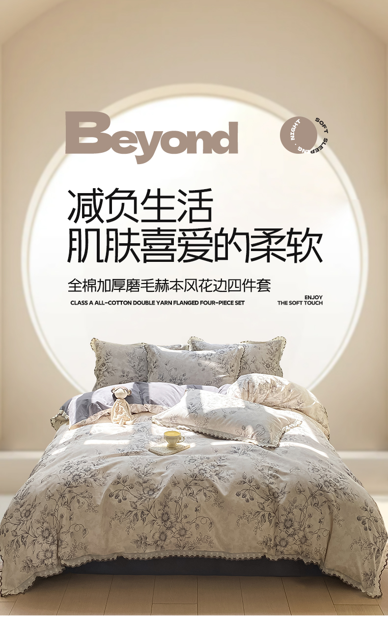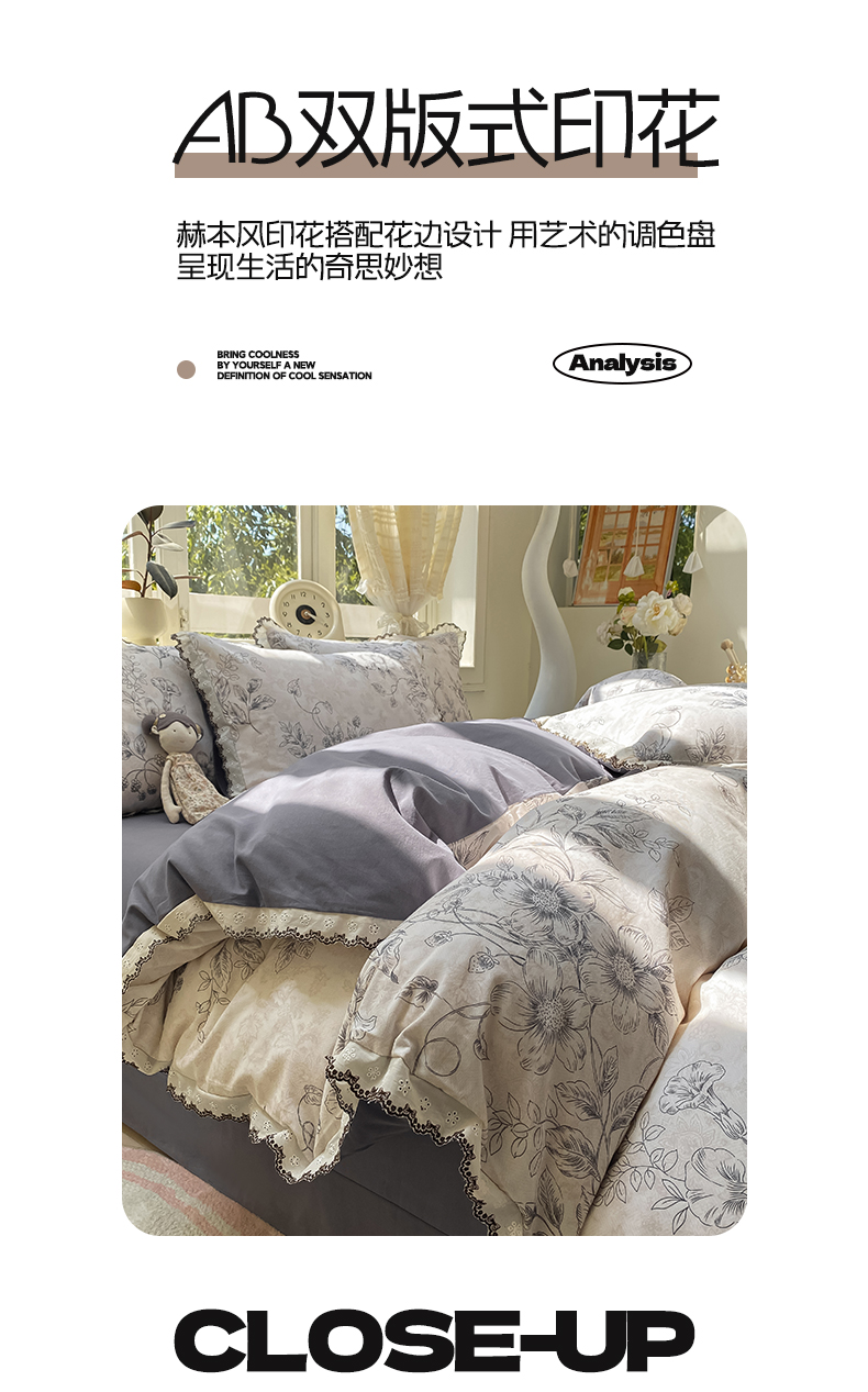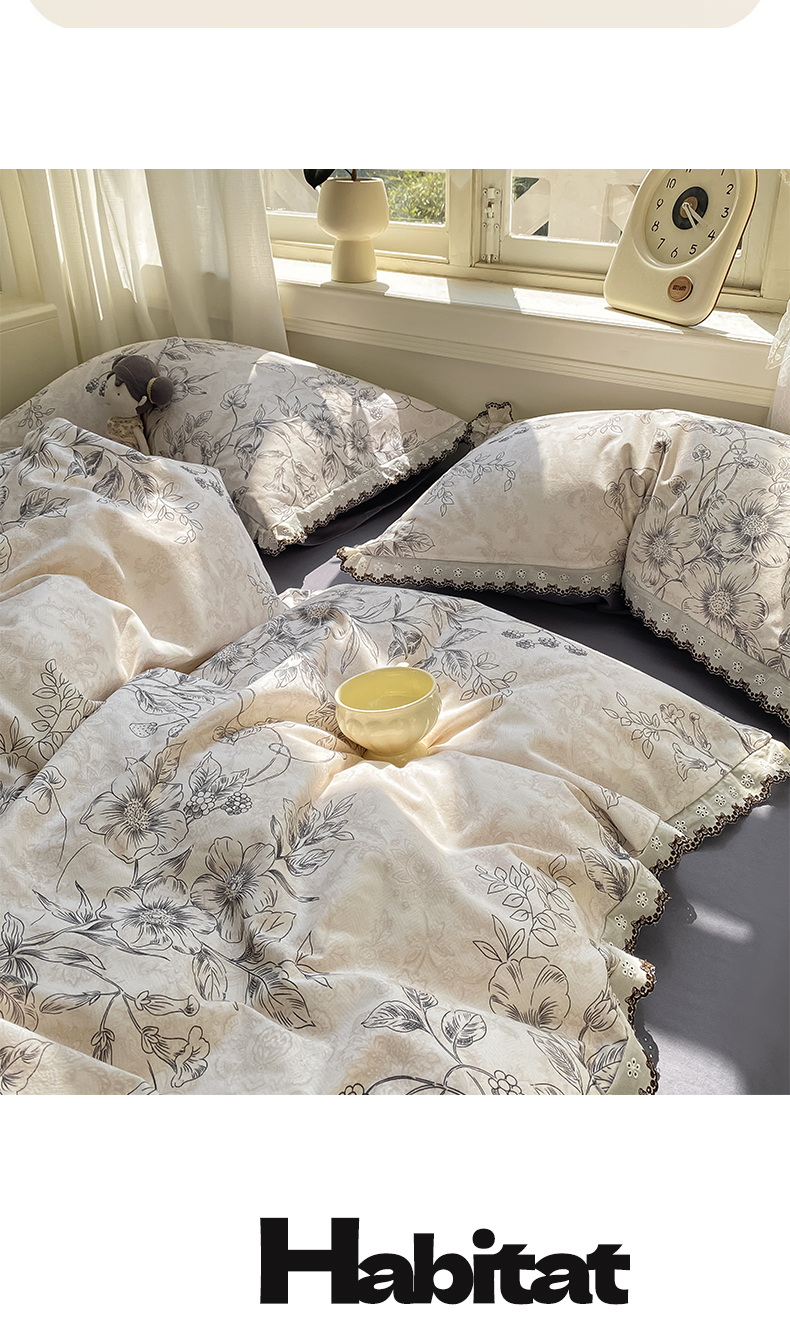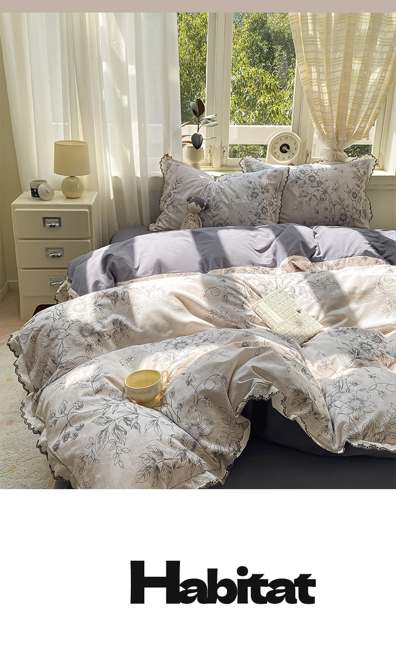 商品名称:慕希家纺 2025新款全棉纯棉加厚赫本风花边磨毛四件套 花禧-灰