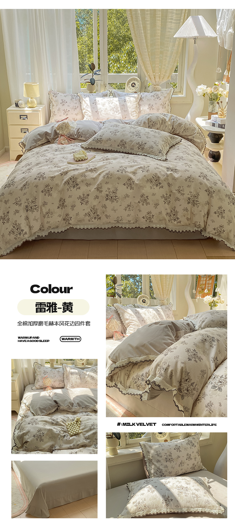 (总)慕希家纺 2025新款高克重牛奶绒花边床盖款四件套-格律时尚,格律时尚-红,格律时尚-灰,格律时尚-咖,格律时尚-蓝,格律时尚-绿