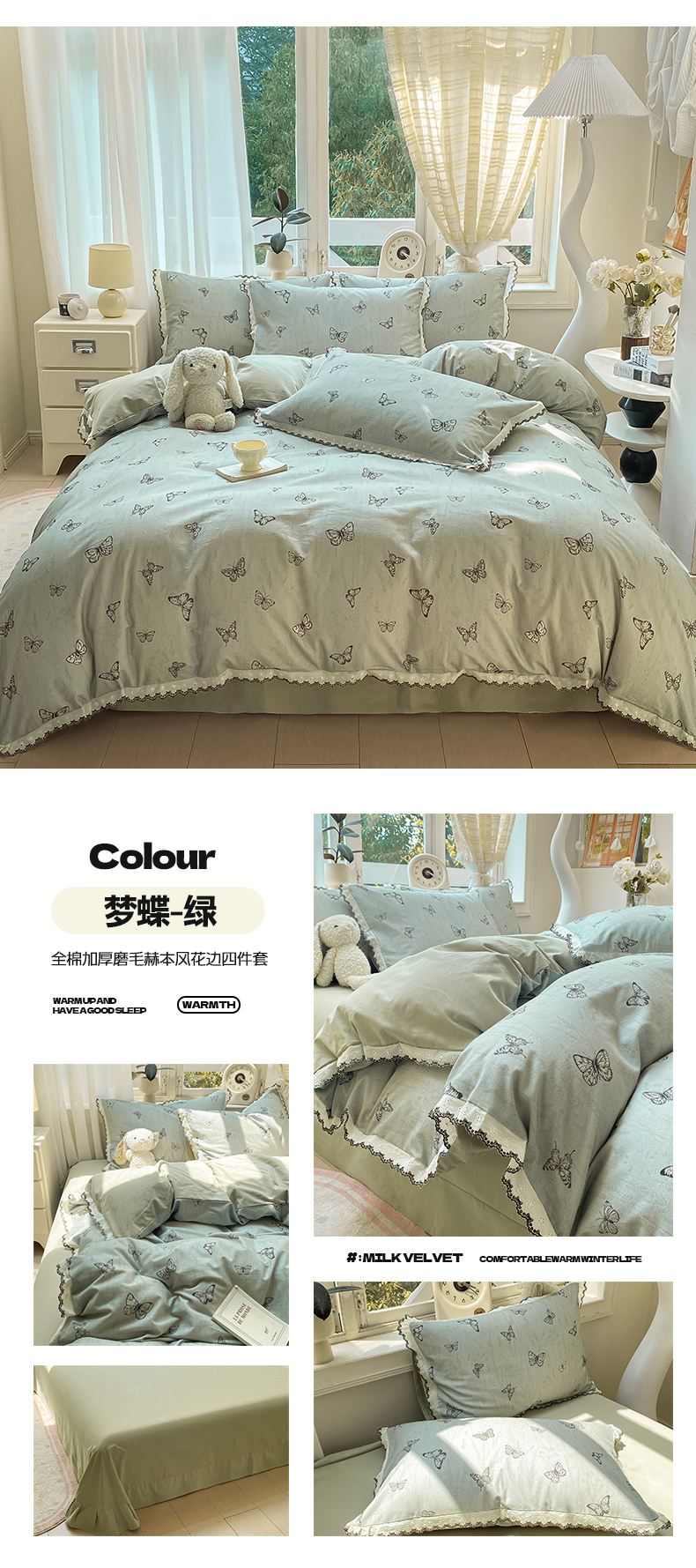 (总)慕希家纺 2025新款高克重牛奶绒雕花四件套-蝶梦,蝶梦-豆蔻绿,蝶梦-风信紫,蝶梦-可可棕,蝶梦-藕粉色,蝶梦-石英灰,蝶梦-雾霾蓝