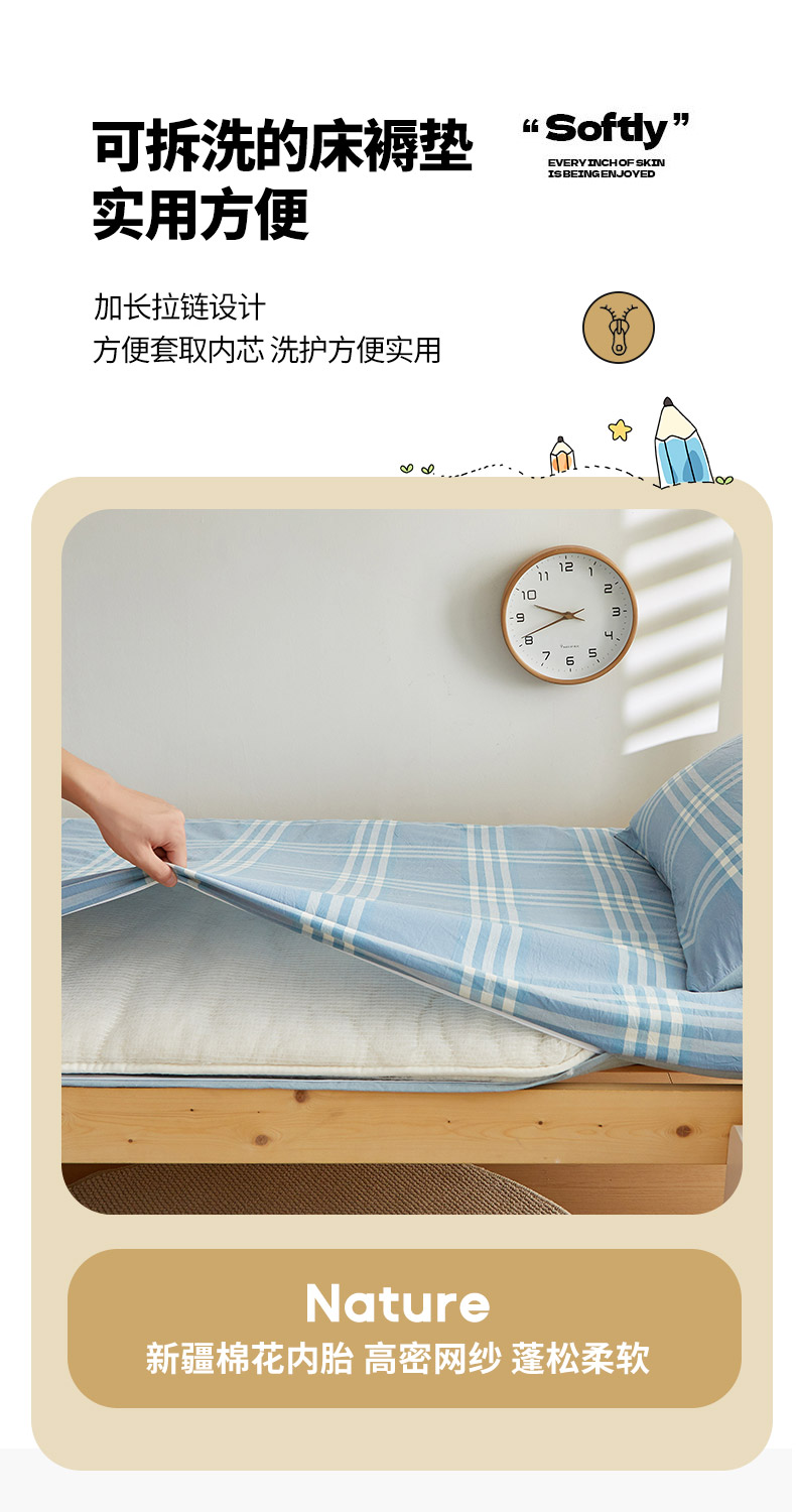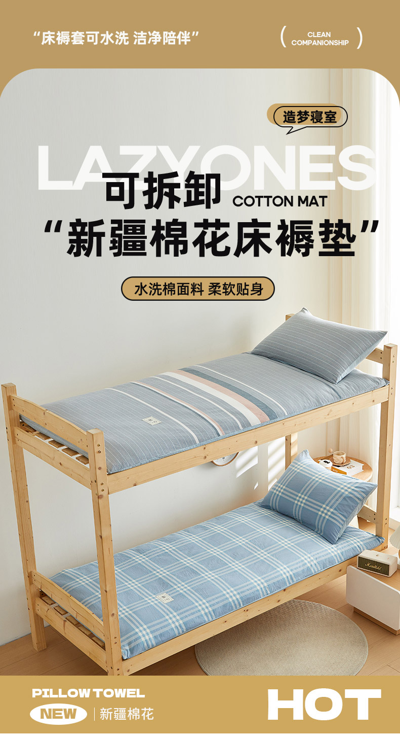 当前位置: 91家纺网 > 商品网购 > 床垫/床褥 > 普通床垫 > 2024新款水洗棉可拆洗棉花学生床垫床褥垫褥子床垫 蓝调格