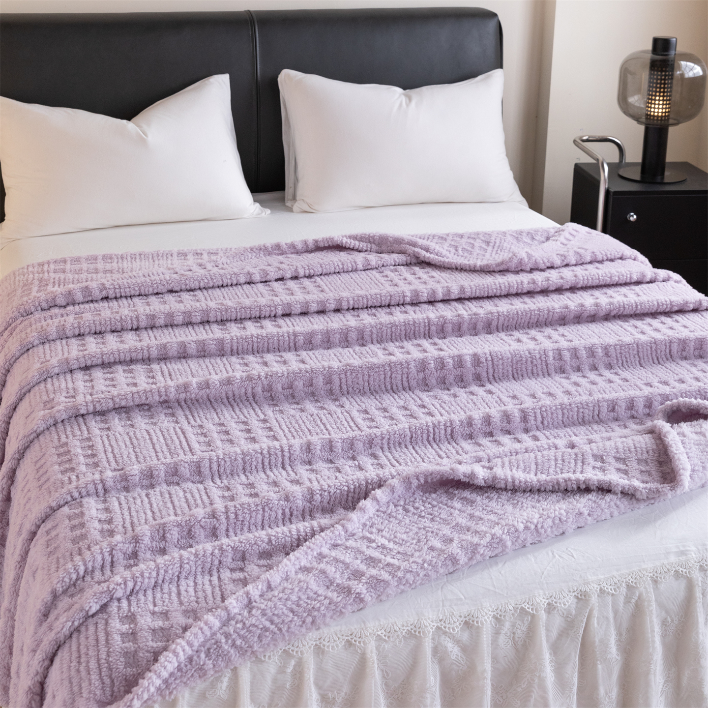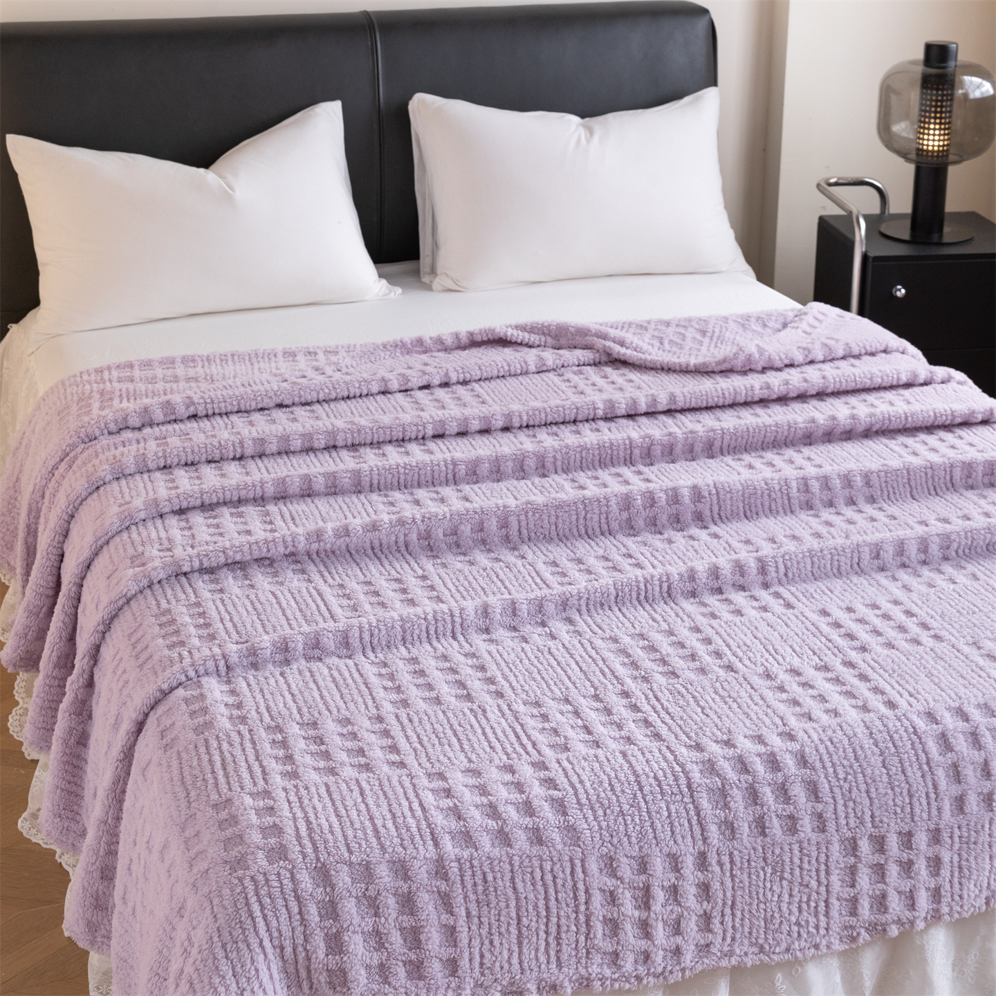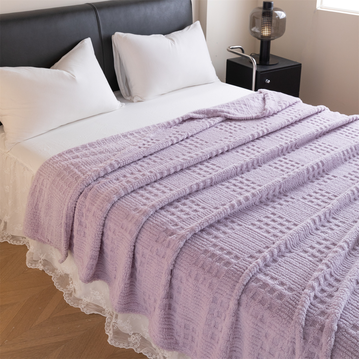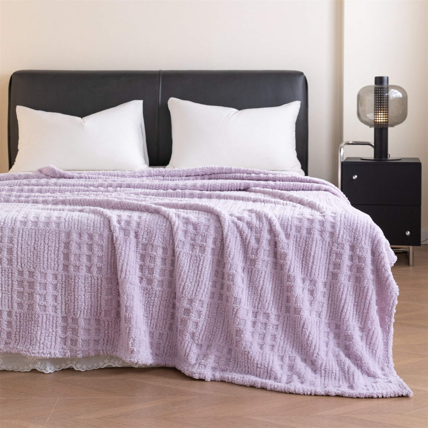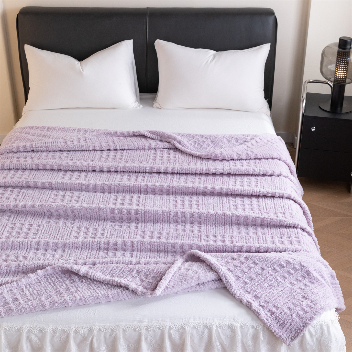 梵心家纺 2025新款塔芙绒纯色华夫格提花毛毯多功能舒棉绒盖毯午睡毛毯-跨境电商 华夫格-紫色