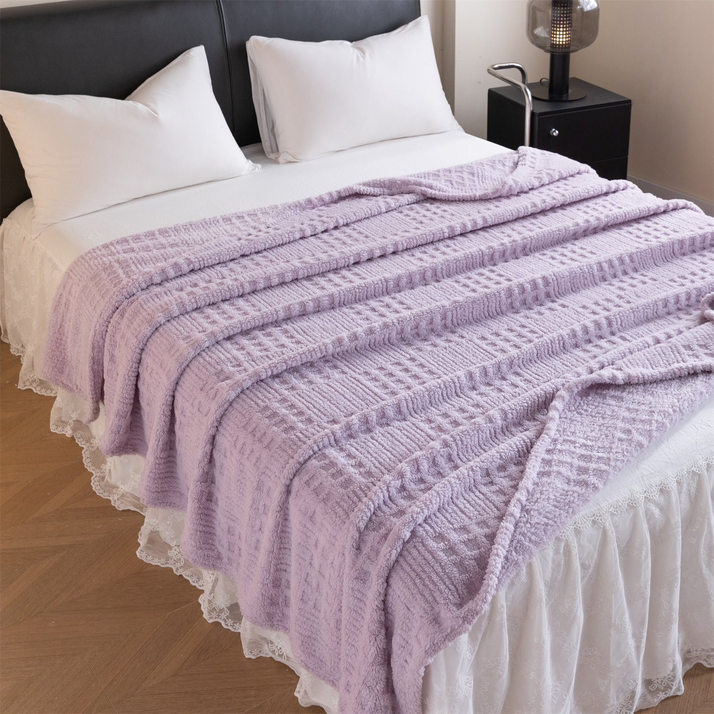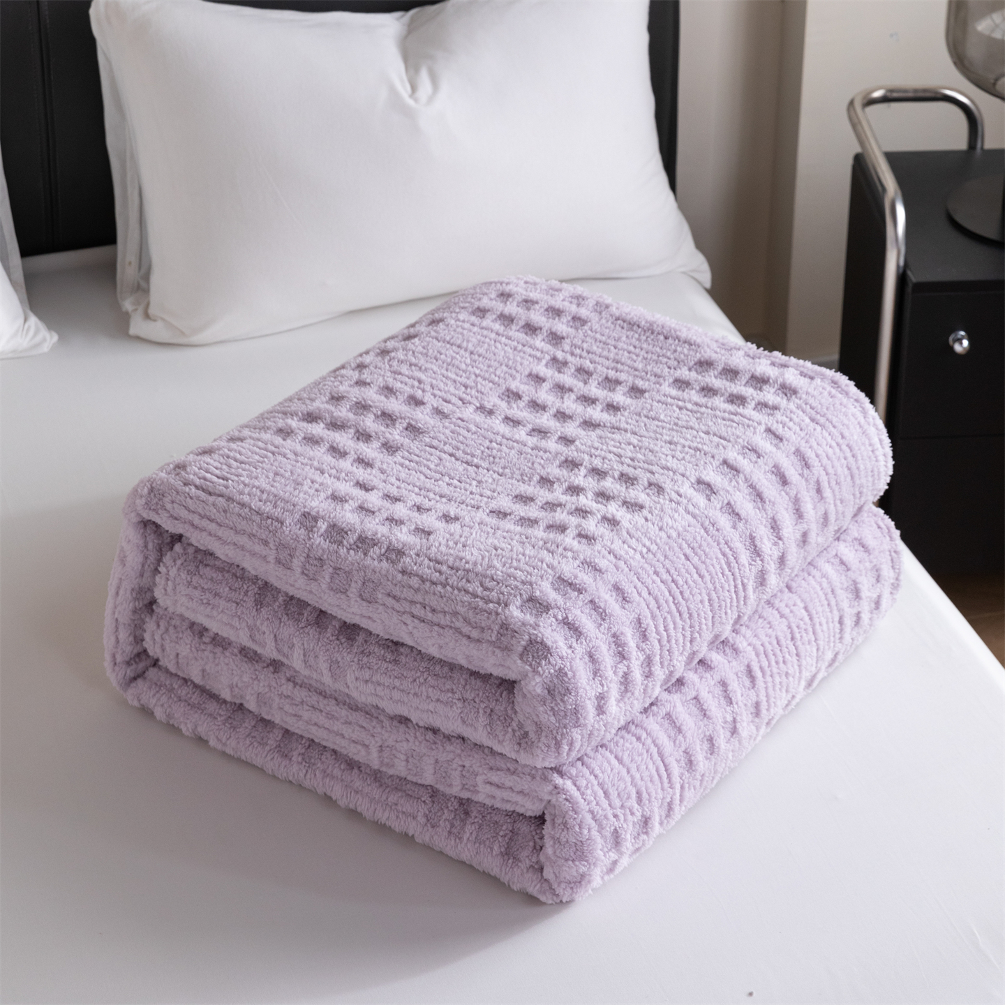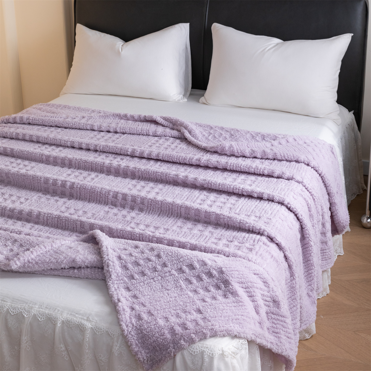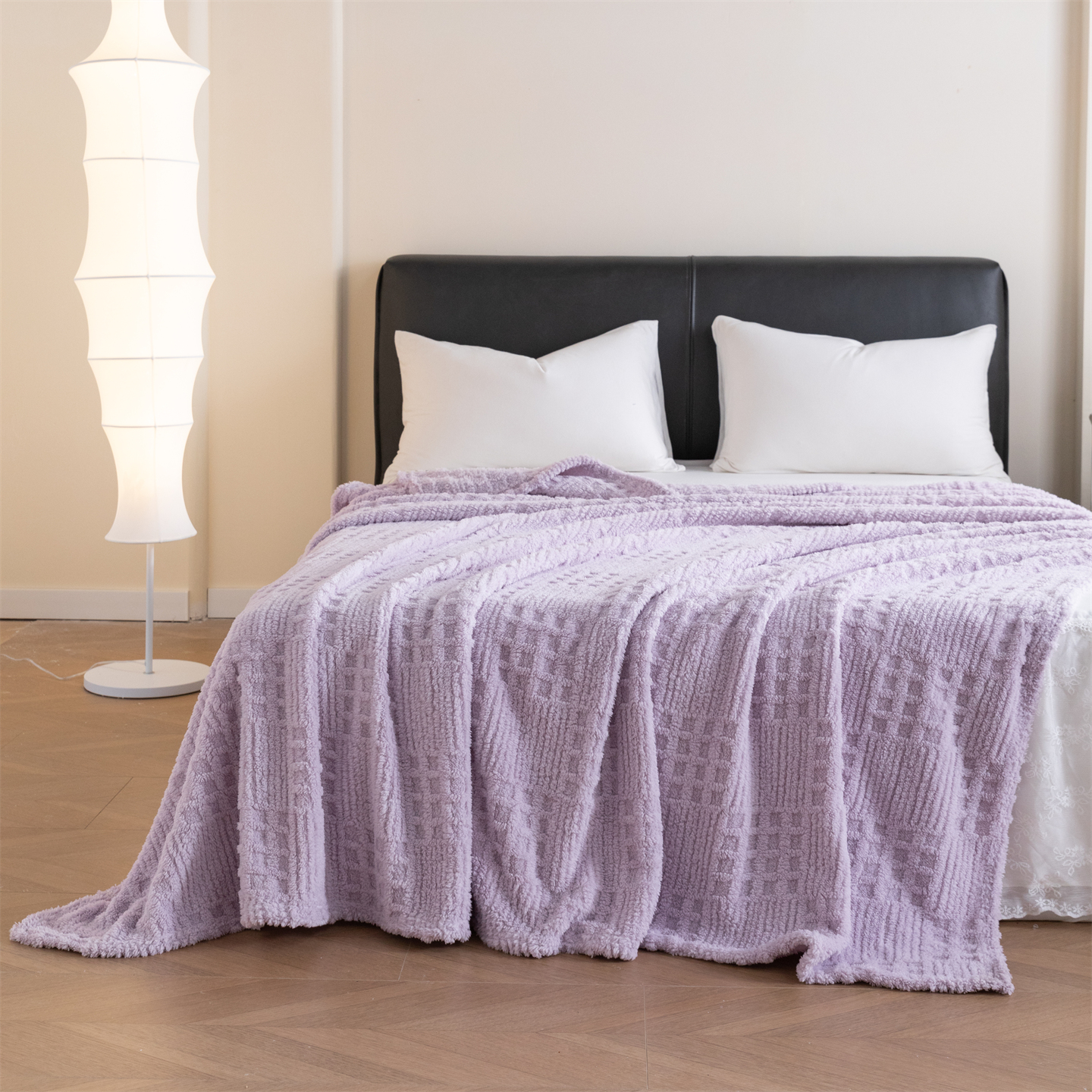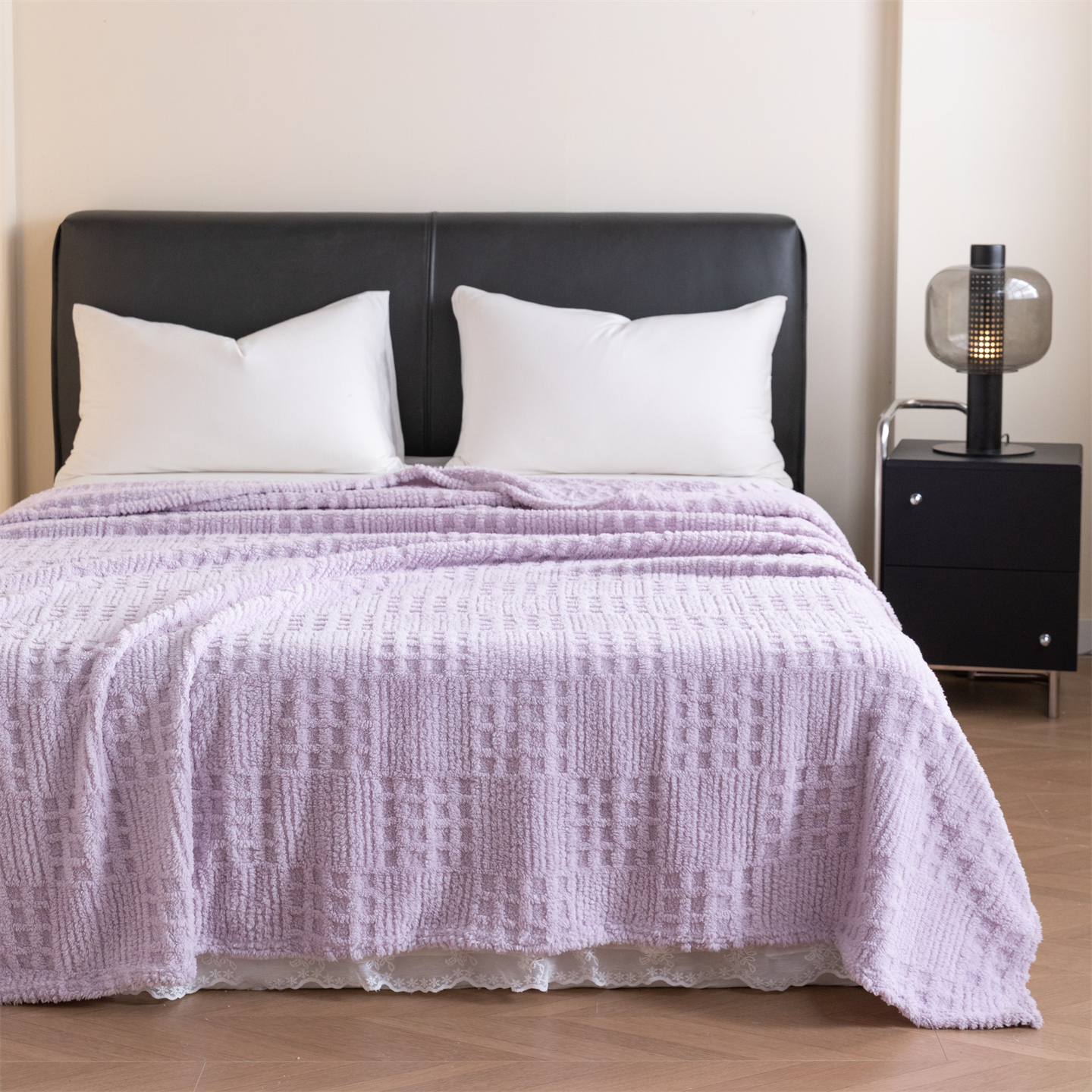梵心家纺 2025新款塔芙绒纯色华夫格提花毛毯多功能舒棉绒盖毯午睡毛毯-跨境电商 华夫格-紫色