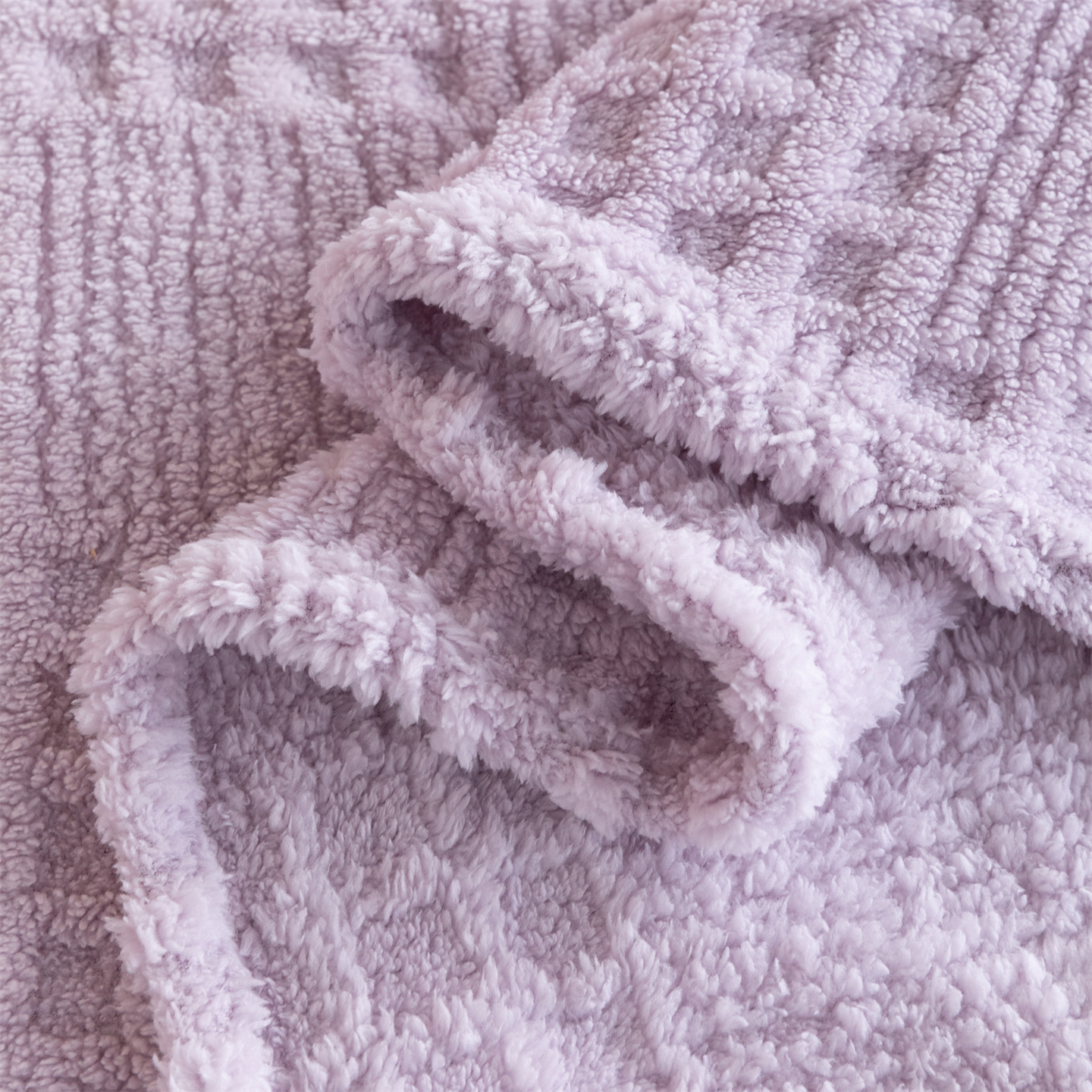 商品名称:梵心家纺 2025新款塔芙绒纯色华夫格提花毛毯多功能舒棉绒盖毯午睡毛毯-跨境电商 华夫格-紫色