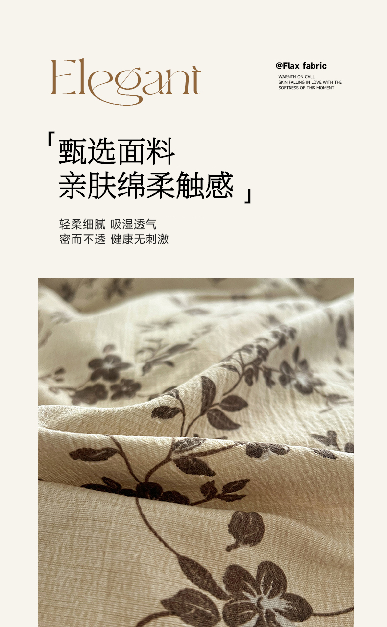 商品名称:一比一家纺 2025秋冬新品高克重原麻复古全棉花边棉麻侘寂风原麻四件套 (控价99元) 茶里