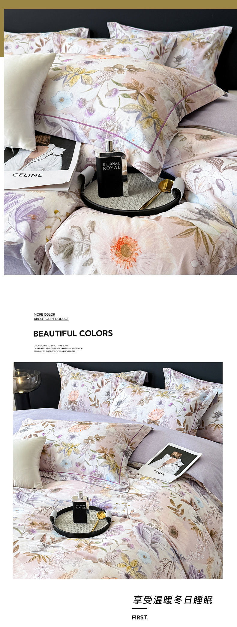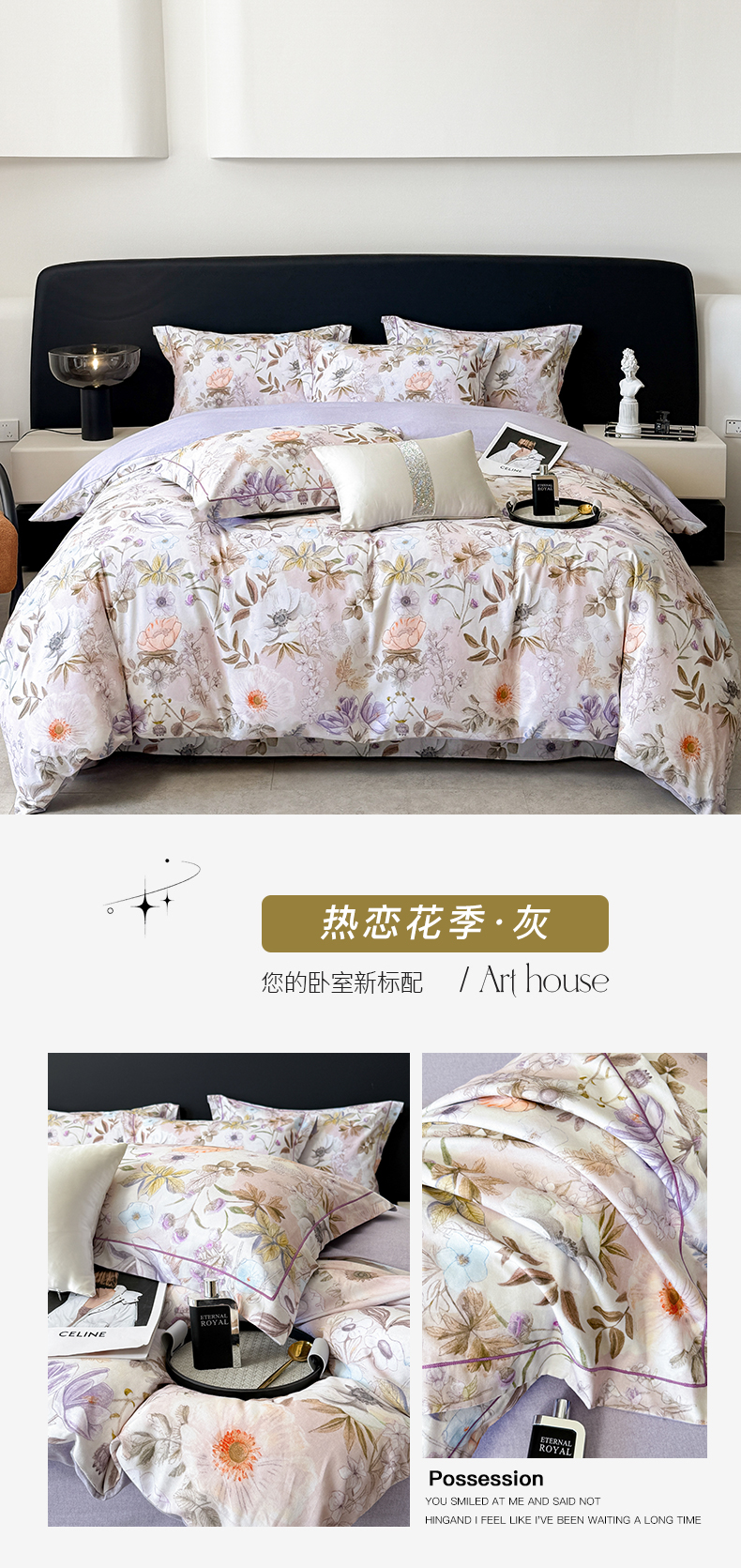 当前位置: 91家纺网 > 商品网购 > 床品套件 > 四件套 > 普通磨毛四件套 > 清雅福2025新款A类全棉磨毛数码印花四件套 热恋花季·灰