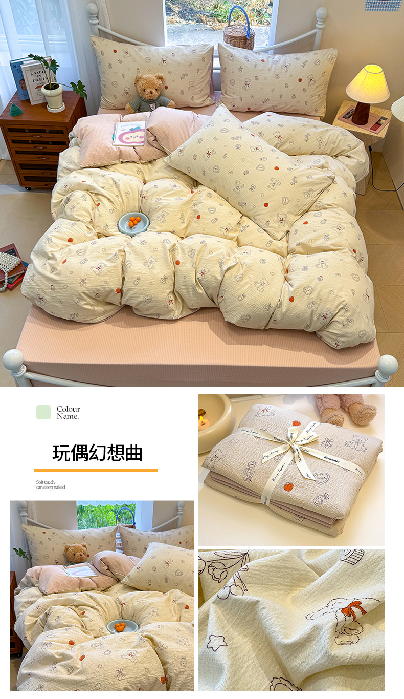 当前位置: 91家纺网 > 商品网购 > 床品套件 > 四件套 > 双层纱四件套 > 颜选 2025春夏新款双层纱印花四件套 玩偶幻想曲