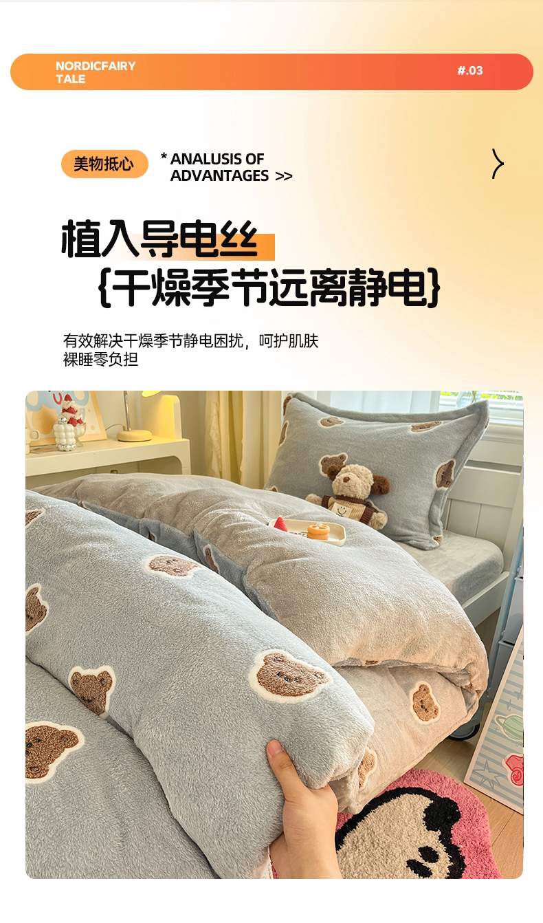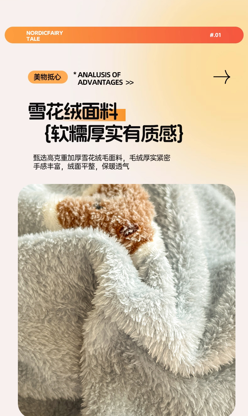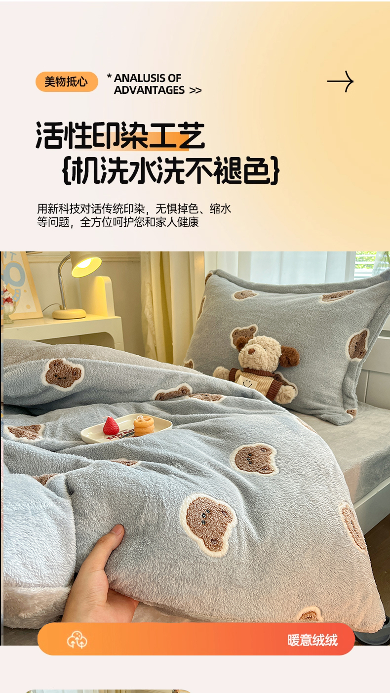 当前位置: 91家纺网 > 商品网购 > 床品套件 > 四件套 > 法莱绒四件套 > 川悦生活 2025新款立体雪花绒印花四件套学生床系列一场景二 波波熊