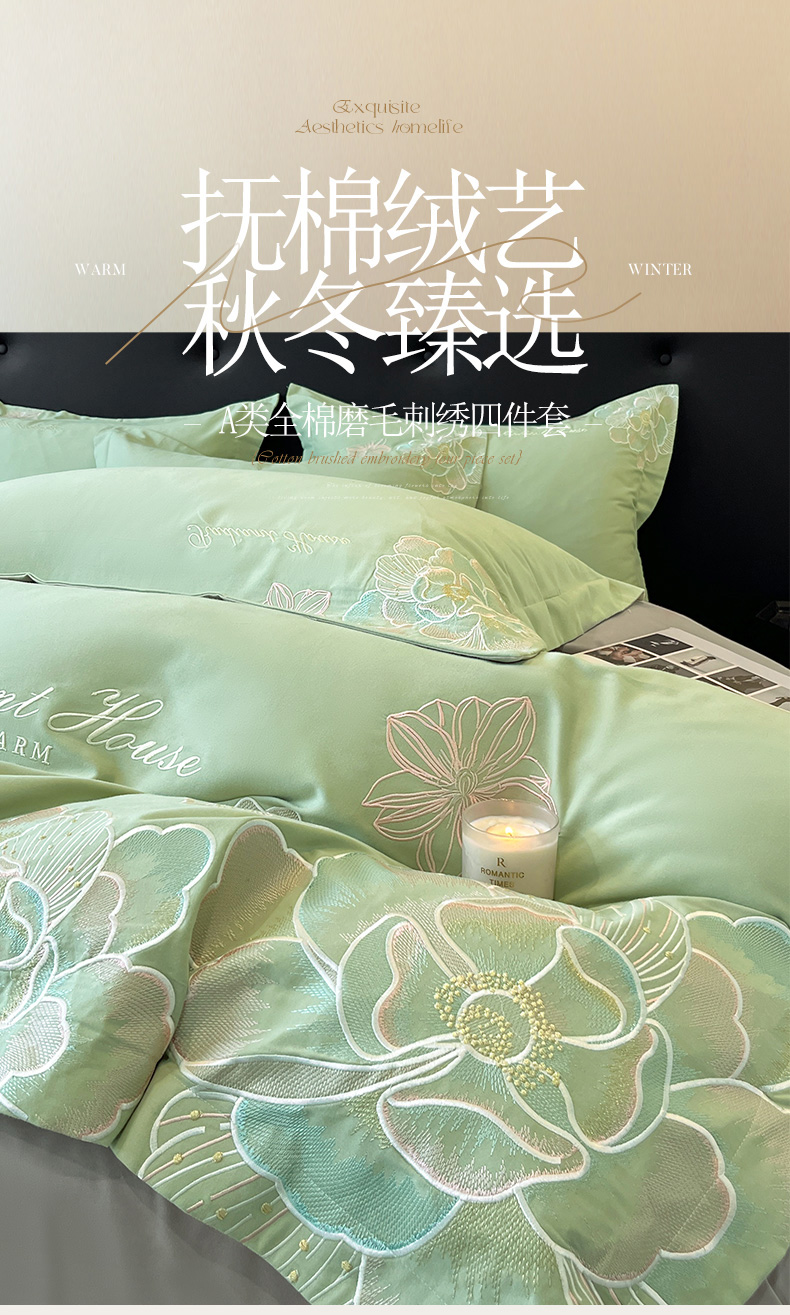 当前位置: 91家纺网 > 商品网购 > 床品套件 > 四件套 > 磨毛活性四件套 > 笙意家纺 2025新款A类全棉磨毛刺绣四件套-秘境系列 秘境-春野绿+陨石灰