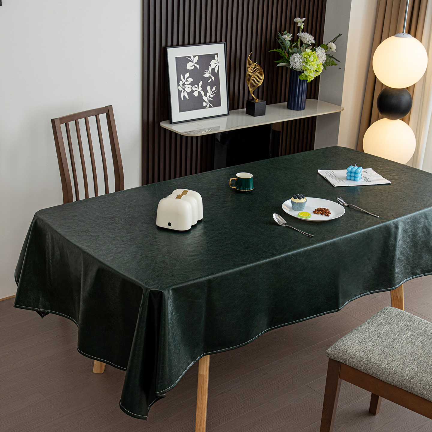 沐沐家纺 2026新款油蜡皮桌布 墨绿