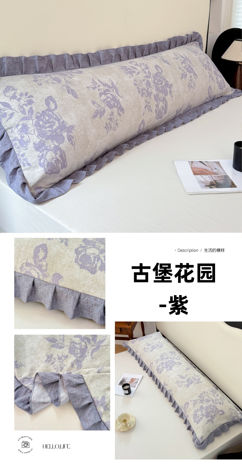 商品名称:梦舒羽 2025新款可水洗原麻双人花边枕套宿舍情侣枕芯套加长枕头套内胆套仿亚麻 古堡花园-紫