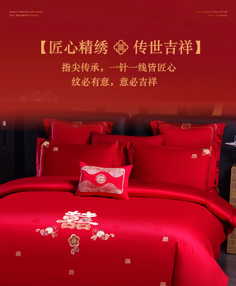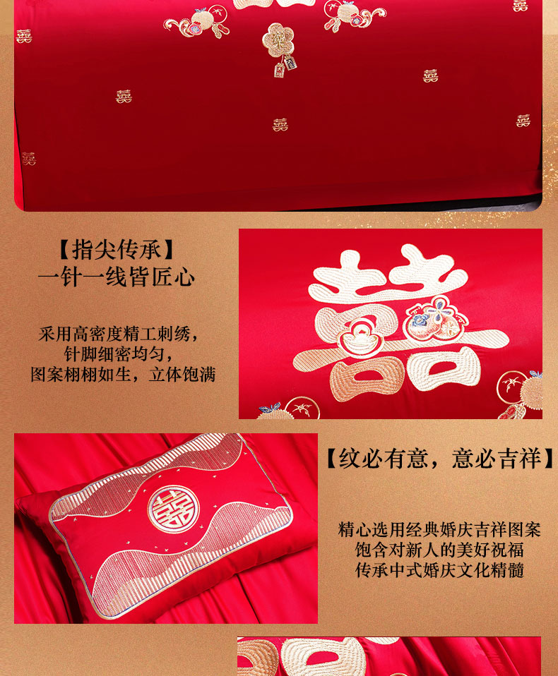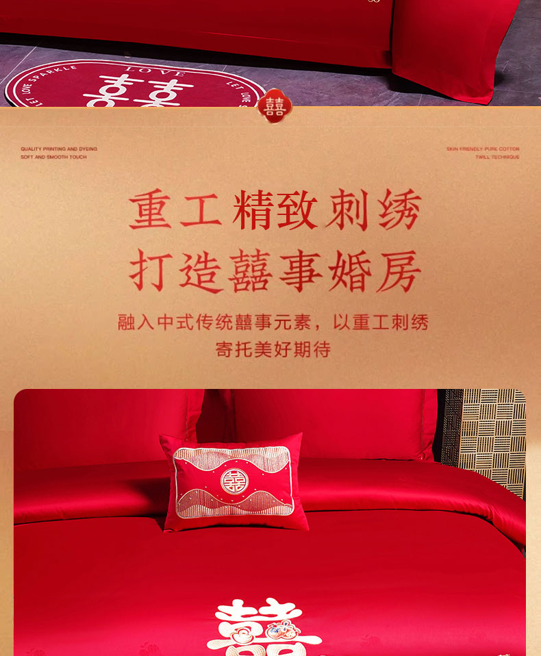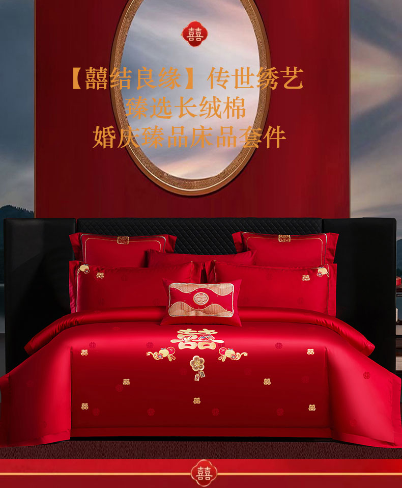 当前位置: 91家纺网 > 商品网购 > 床品套件 > 四件套 > 婚庆四件套 > 蒂爵 2025新款婚庆长绒棉时尚小红书爆款刺绣婚庆四件套多件套-提花款 喜福临门