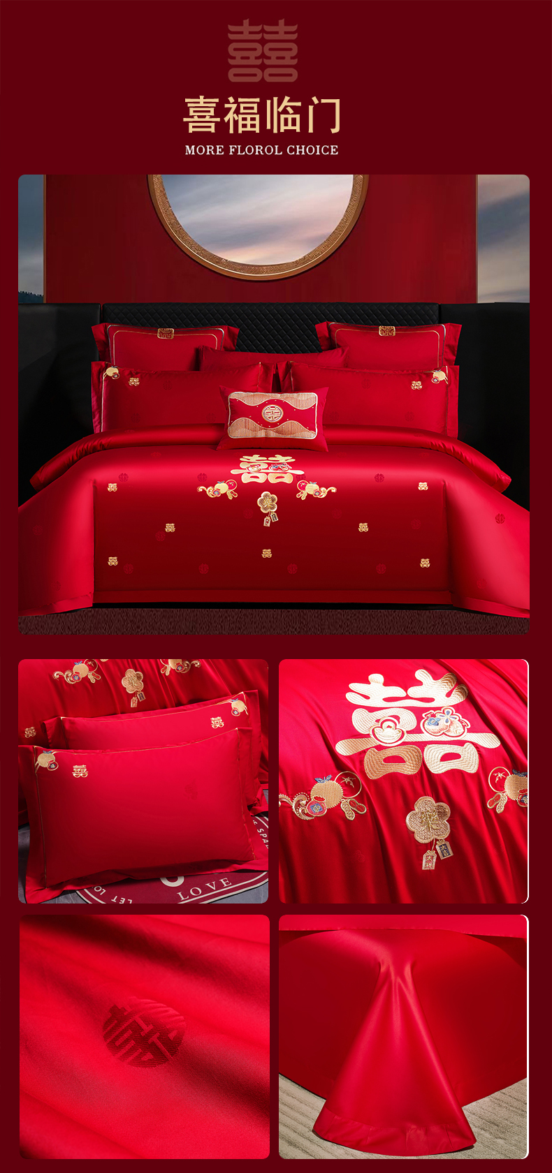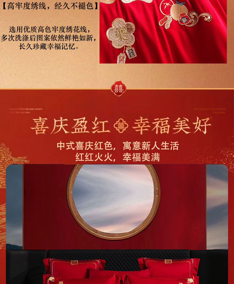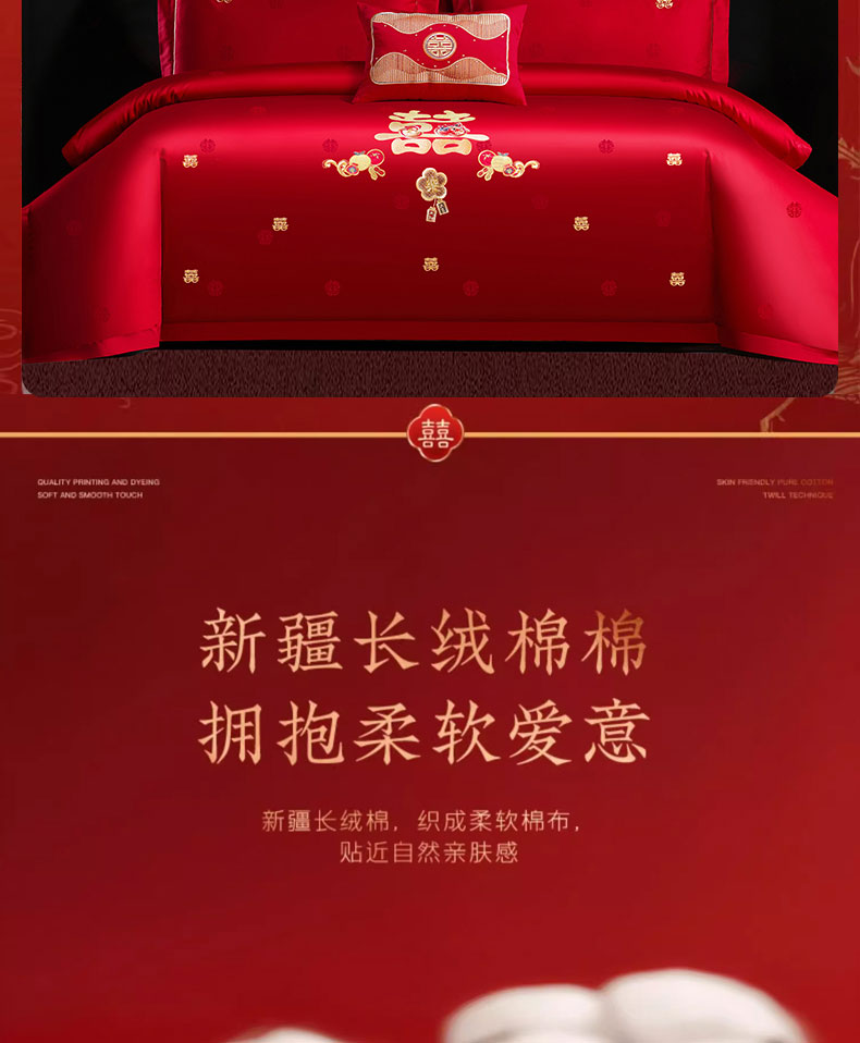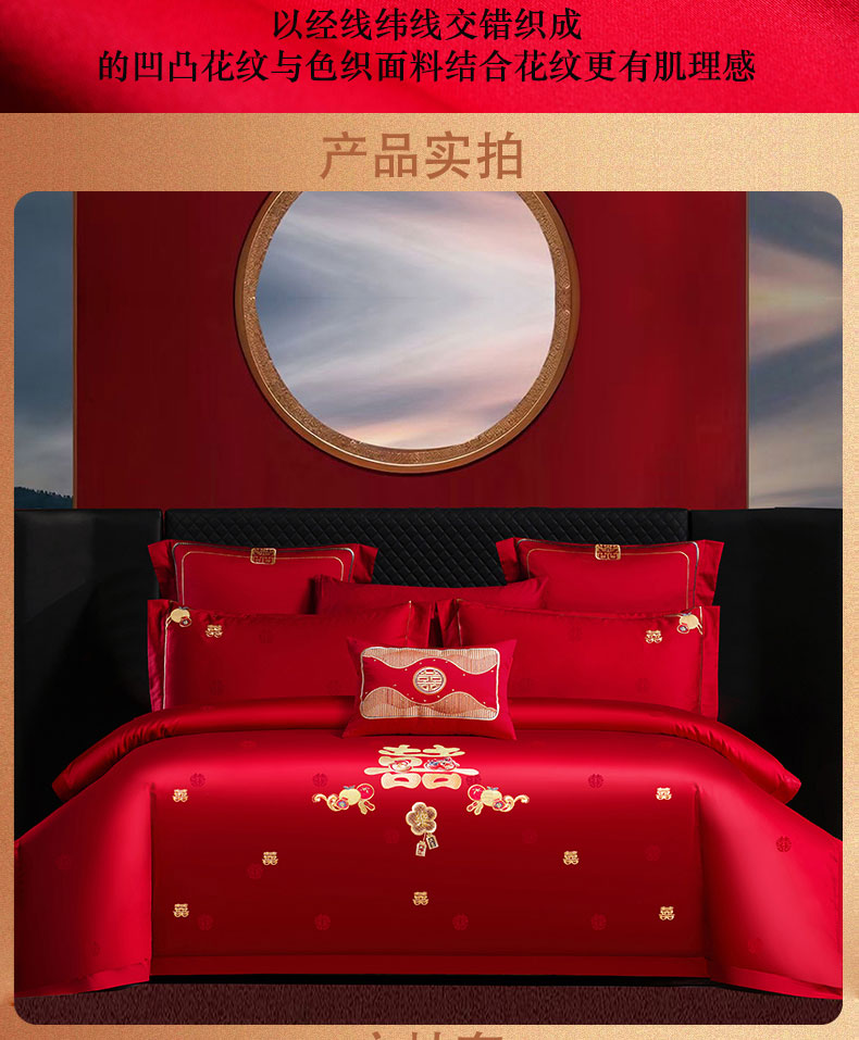 当前位置: 91家纺网 > 商品网购 > 床品套件 > 四件套 > 婚庆四件套 > 蒂爵 2025新款婚庆长绒棉时尚小红书爆款刺绣婚庆四件套多件套-提花款 喜福临门