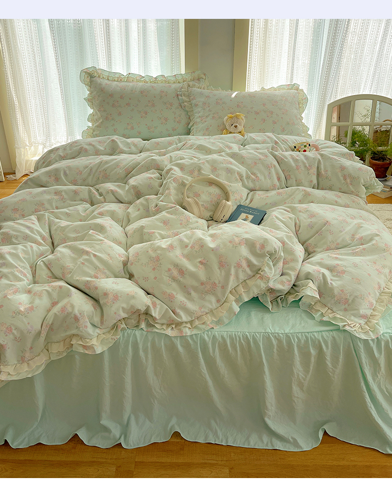 当前位置: 91家纺网 > 商品网购 > 床品套件 > 四件套 > 全棉普通四件套 > 轻奢坊 2025新款双层花边仙仙碎花水洗棉四件套 花开半夏-蓝