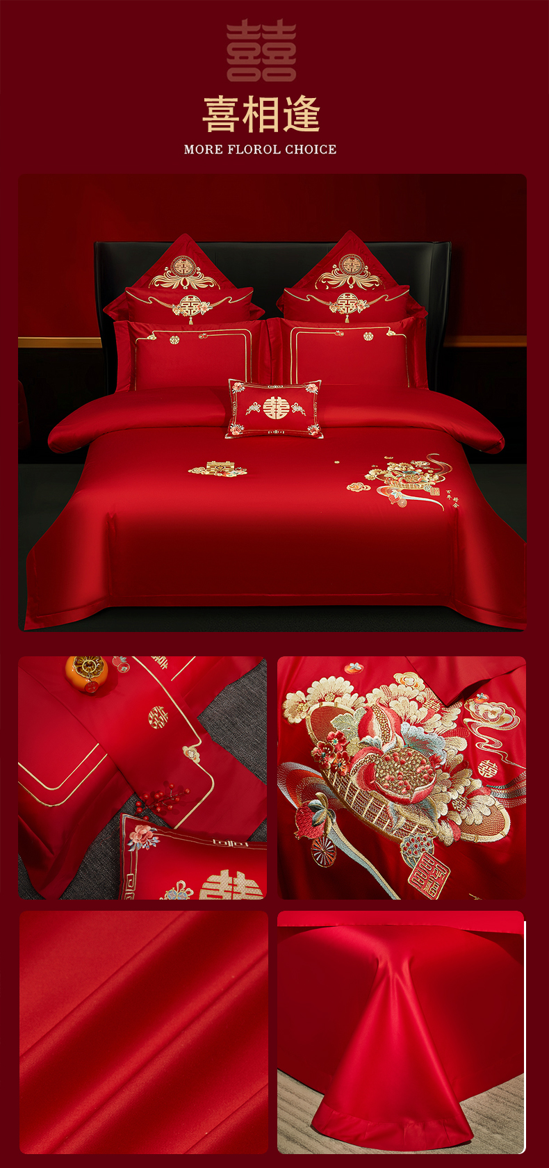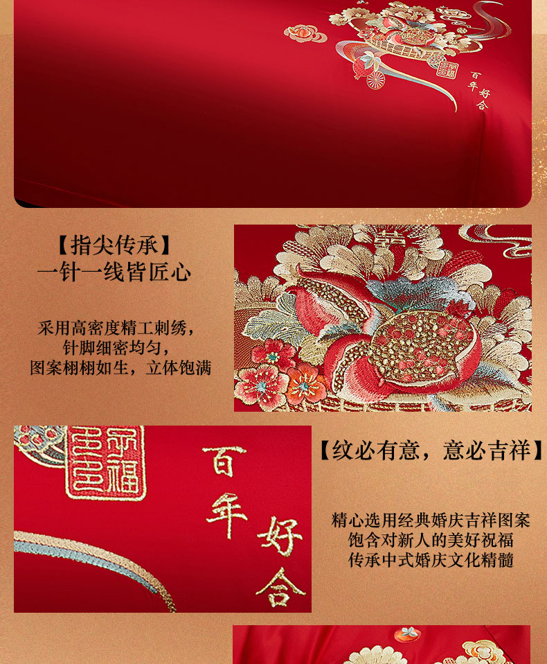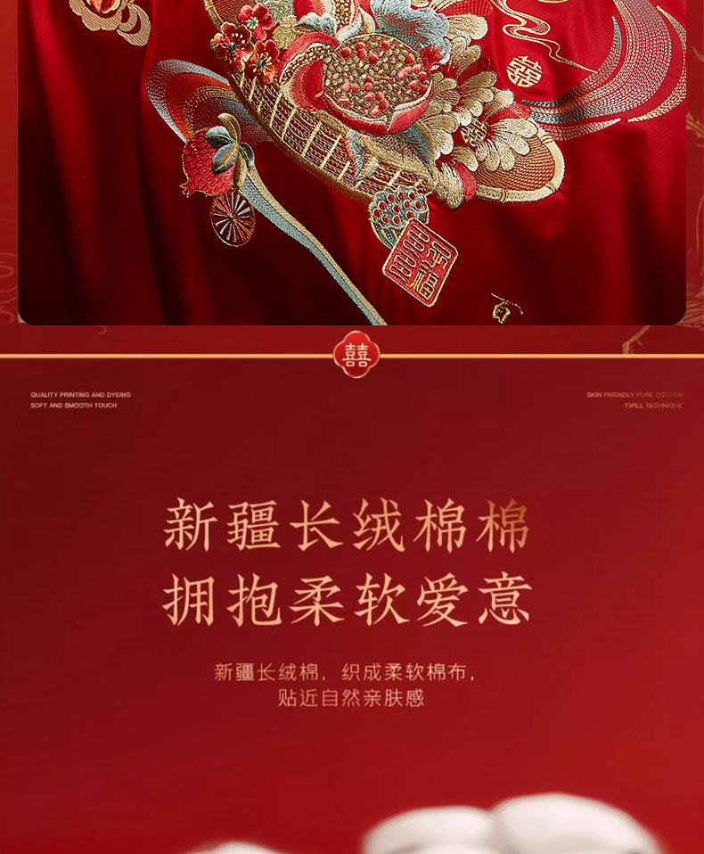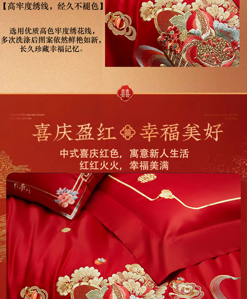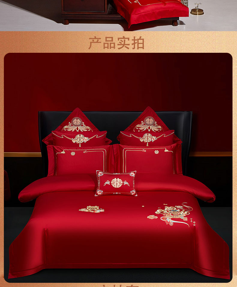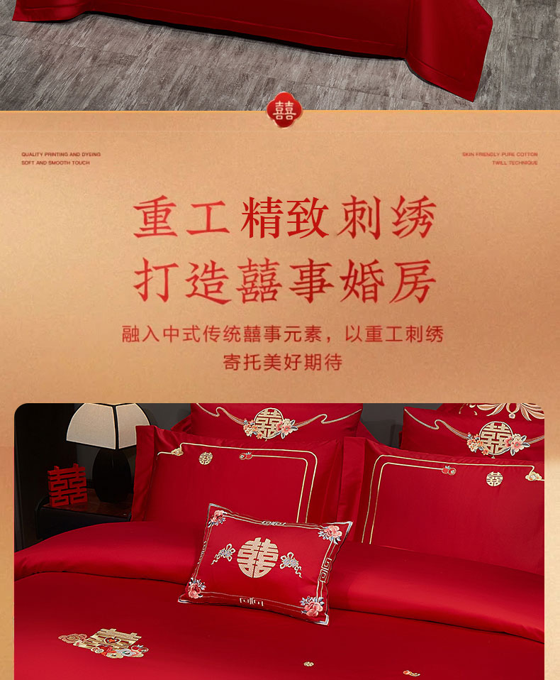 当前位置: 91家纺网 > 商品网购 > 床品套件 > 四件套 > 婚庆四件套 > 蒂爵 2025新款婚庆长绒棉时尚小红书爆款刺绣婚庆四件套多件套-无提花款 喜相逢