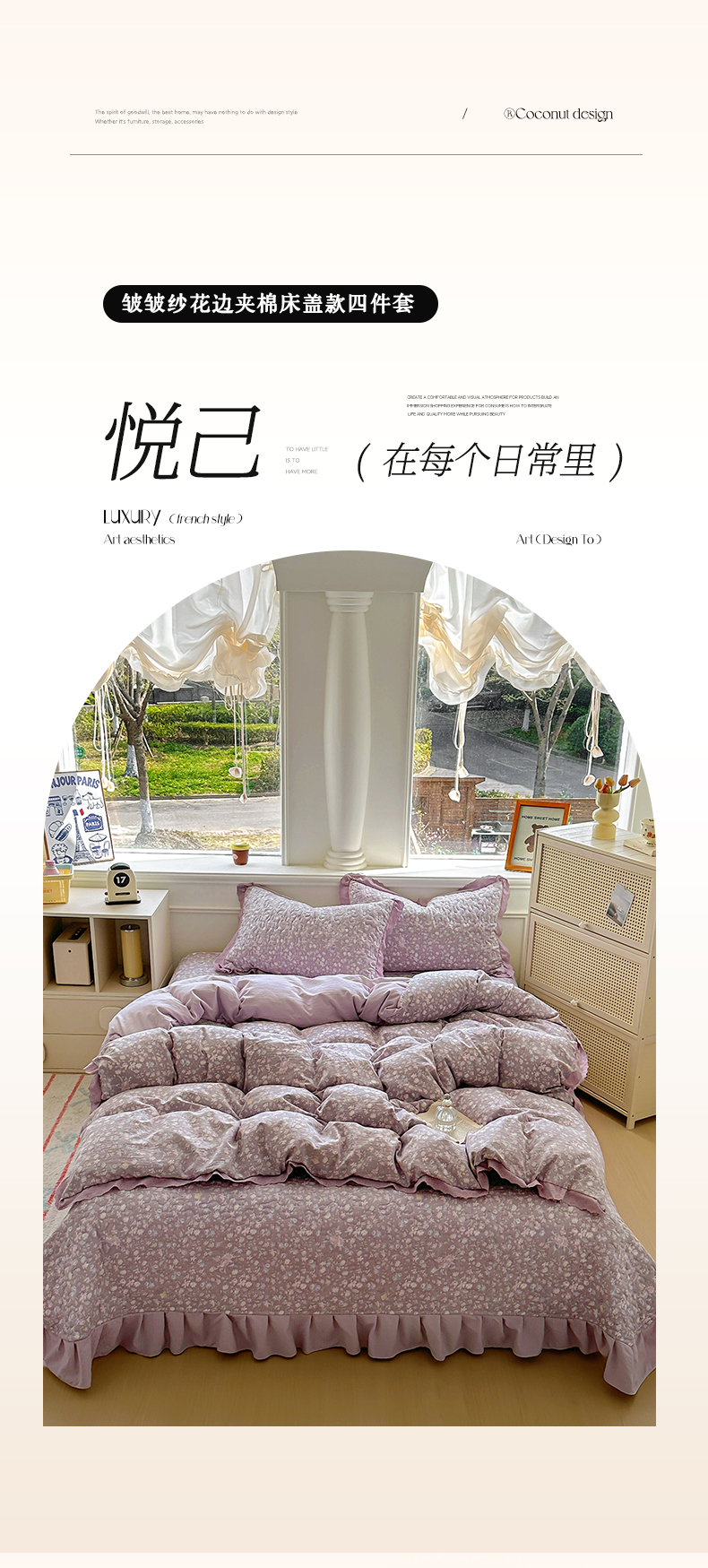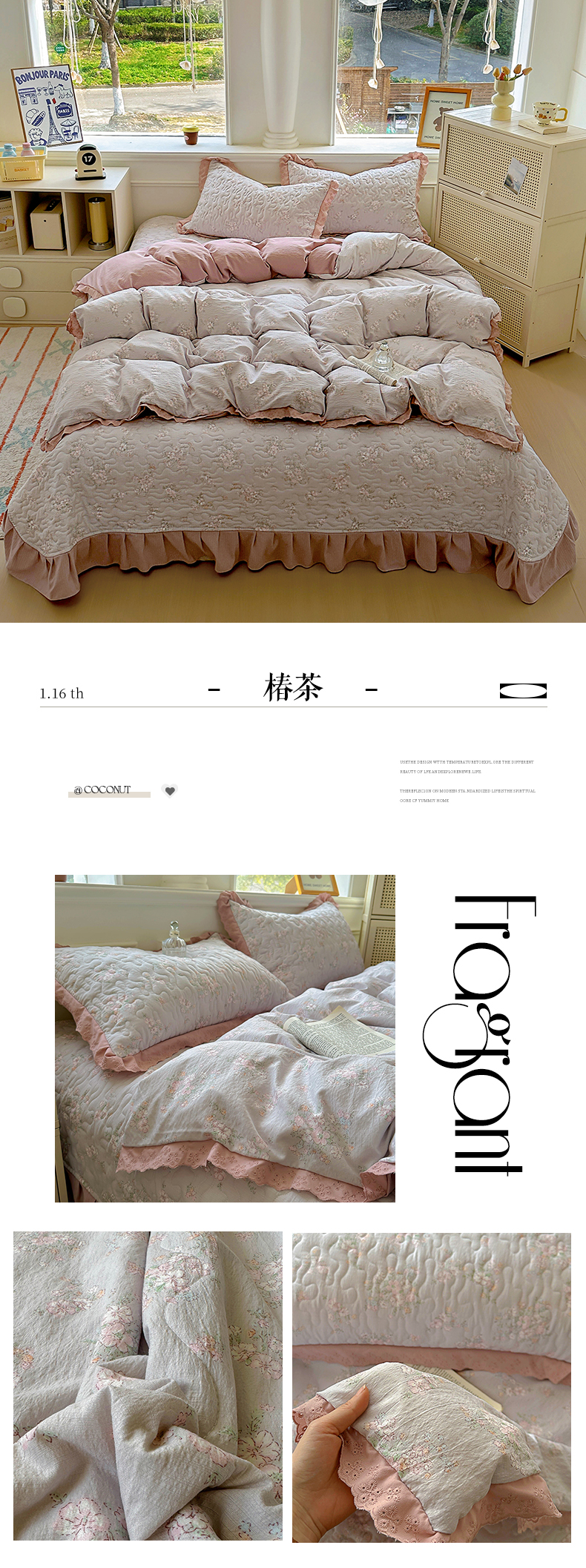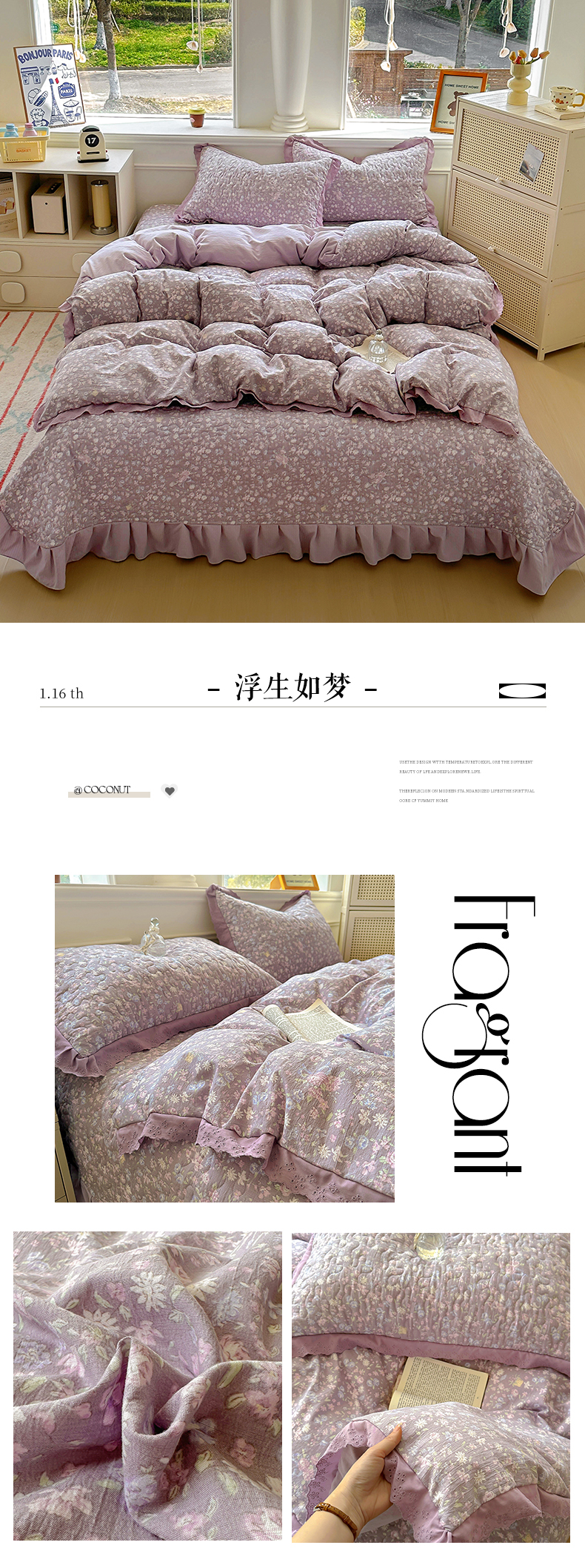(总)美梦家纺 2026新款高克重全棉花边云感棉床盖四件套,希雅莉·米,雅格·粉,樱桃蜜·咖,尤丽叶·咖,紫藤碎花·咖,莓莓素语·粉,暖小象·兰,浅叶·米,希雅莉·灰