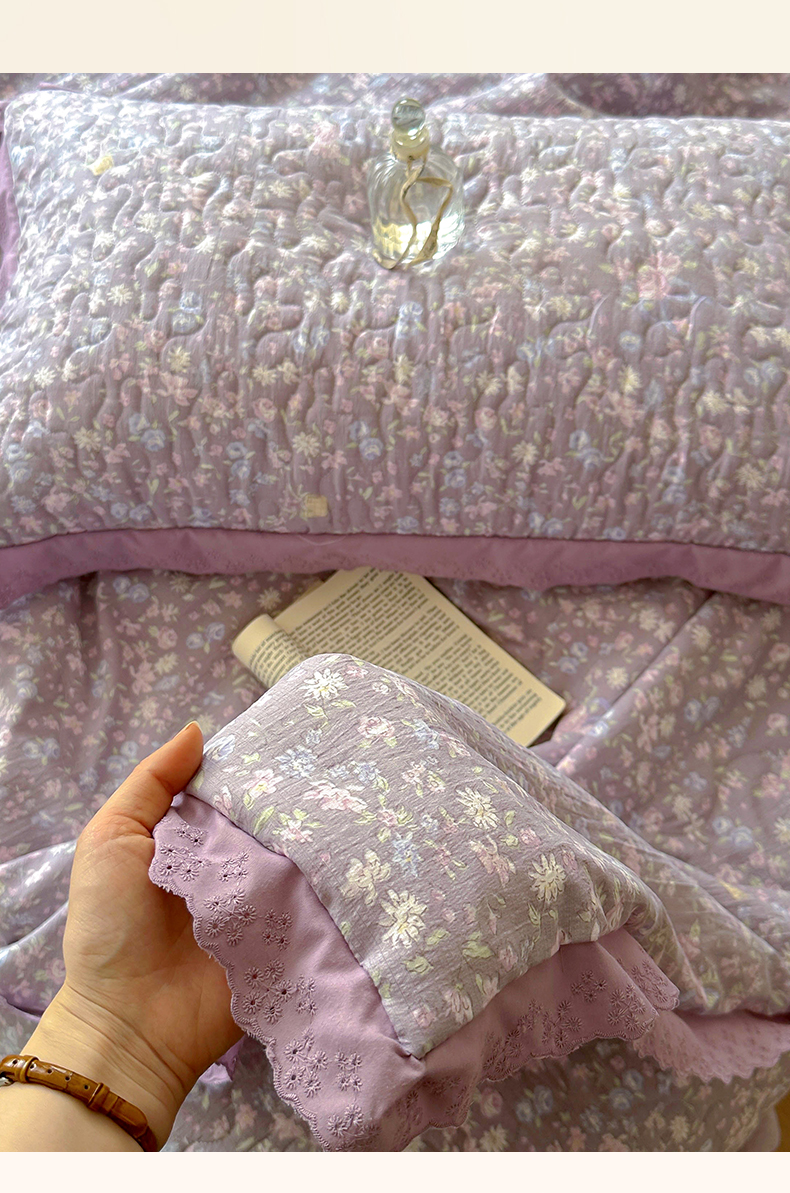 商品名称:美梦家纺 2025新款皱皱纱花边夹棉床盖四件套 洛千凝