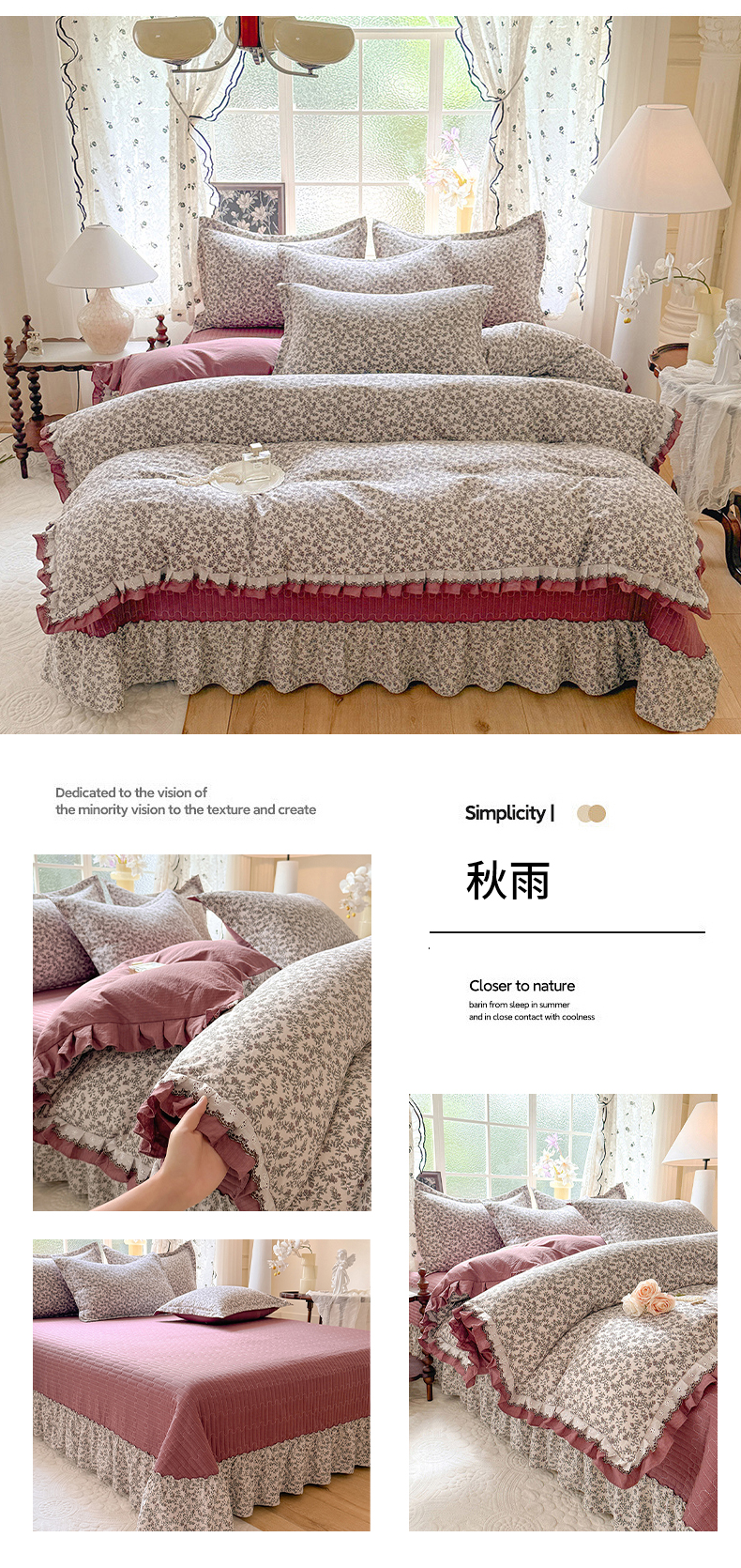 (总)韩约家纺 2026新款韩式花边古法棉感床盖四件套,知否,午后时光,漫花蝶舞,莓莓果,花影,甜心狗,初遇,萝莉,雨沫