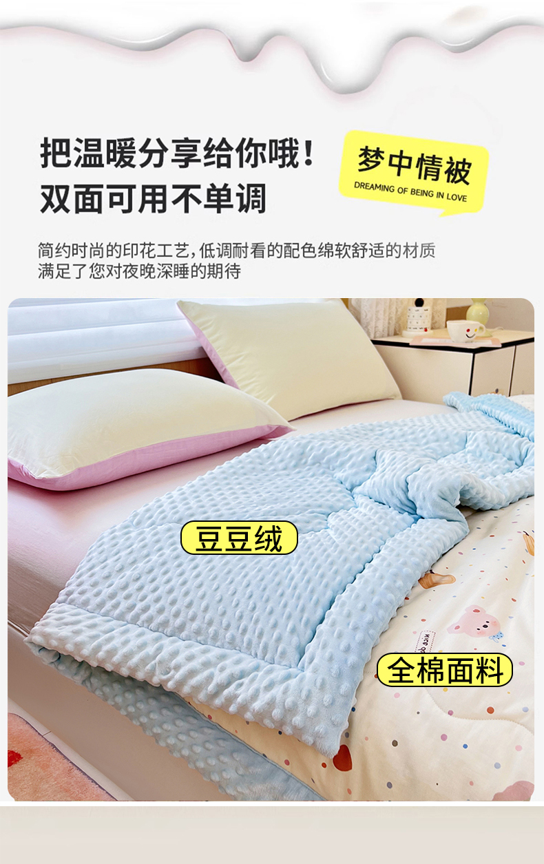 商品名称:柏薇 2025新款A类全棉纯棉豆豆绒被 被子被芯 哈哈兔
