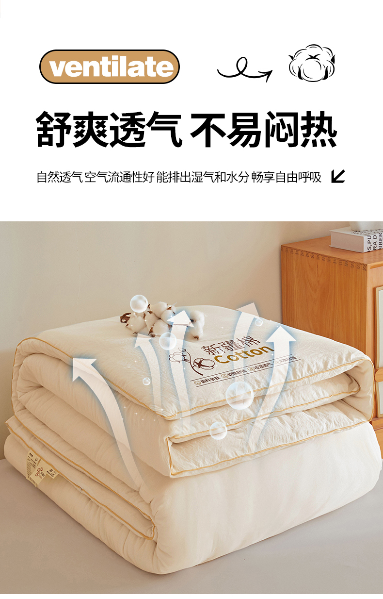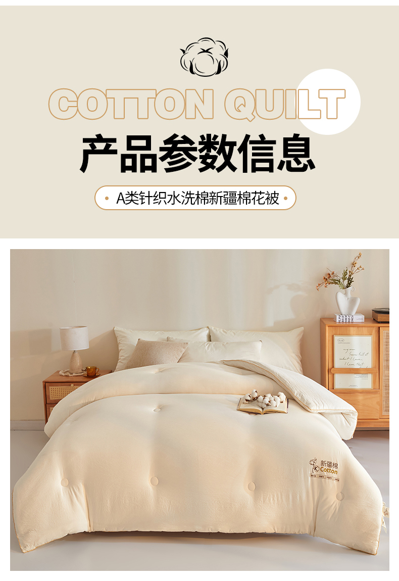 • 91家纺网 家纺一手货源 找家纺 锦逸家居 2025新款A类水洗棉100%新疆棉花被棉絮春秋被冬被被子被芯 米白色