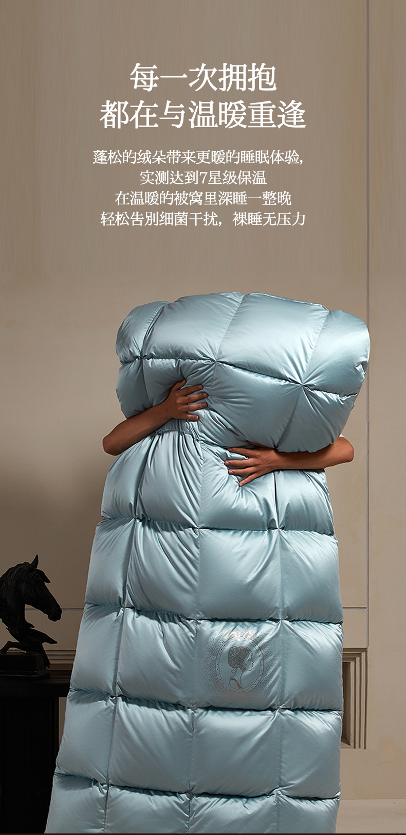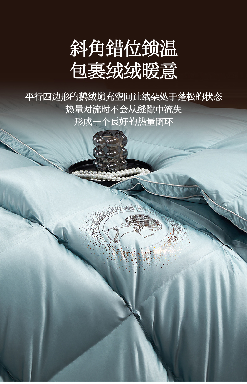 • 91家纺网 家纺一手货源 找家纺 织梦人羽绒工厂店 2025新款高蓬松羽绒被95鹅绒大牌同款花型-真丝缎米字系列 贵夫人真丝缎-水绿