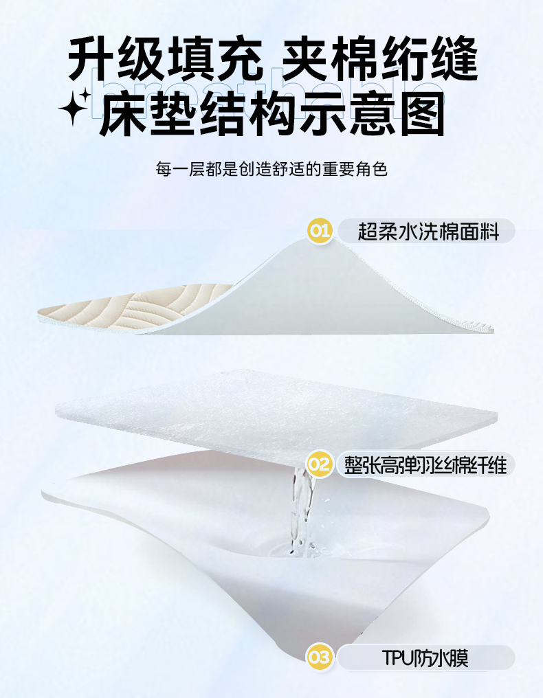 九亭家纺 2025新款A类防水夹棉床笠 水波纹-白色