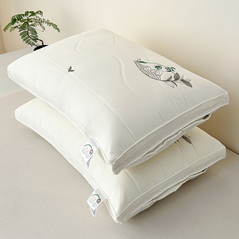 (总)永乐枕芯 2025新款刺绣款高档单人枕头枕芯亲肤透气单人舒睡保健枕睡眠不变形,粉玉,青柠绿,雅韵灰,栀子白,组合图