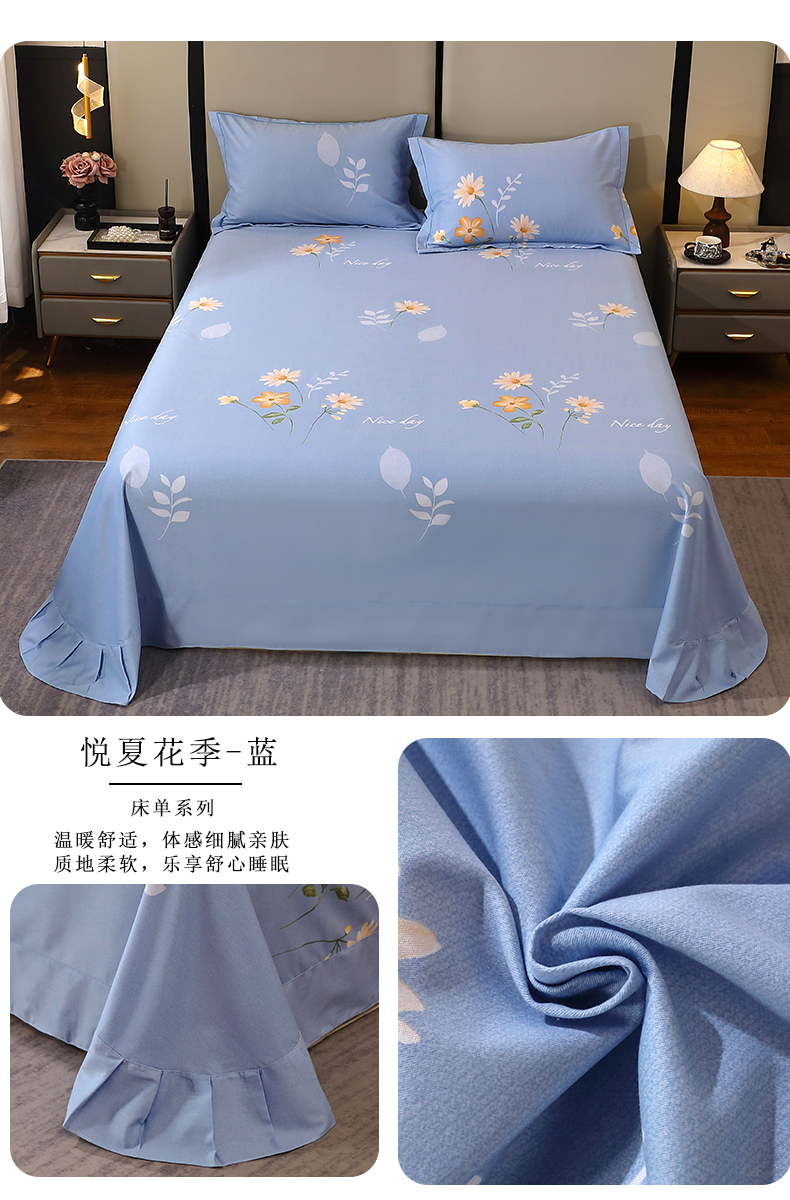 商品名称:馨雅家纺 2025新款全棉纯棉磨毛系列床单单品床单单件单床单 悦夏花季-蓝