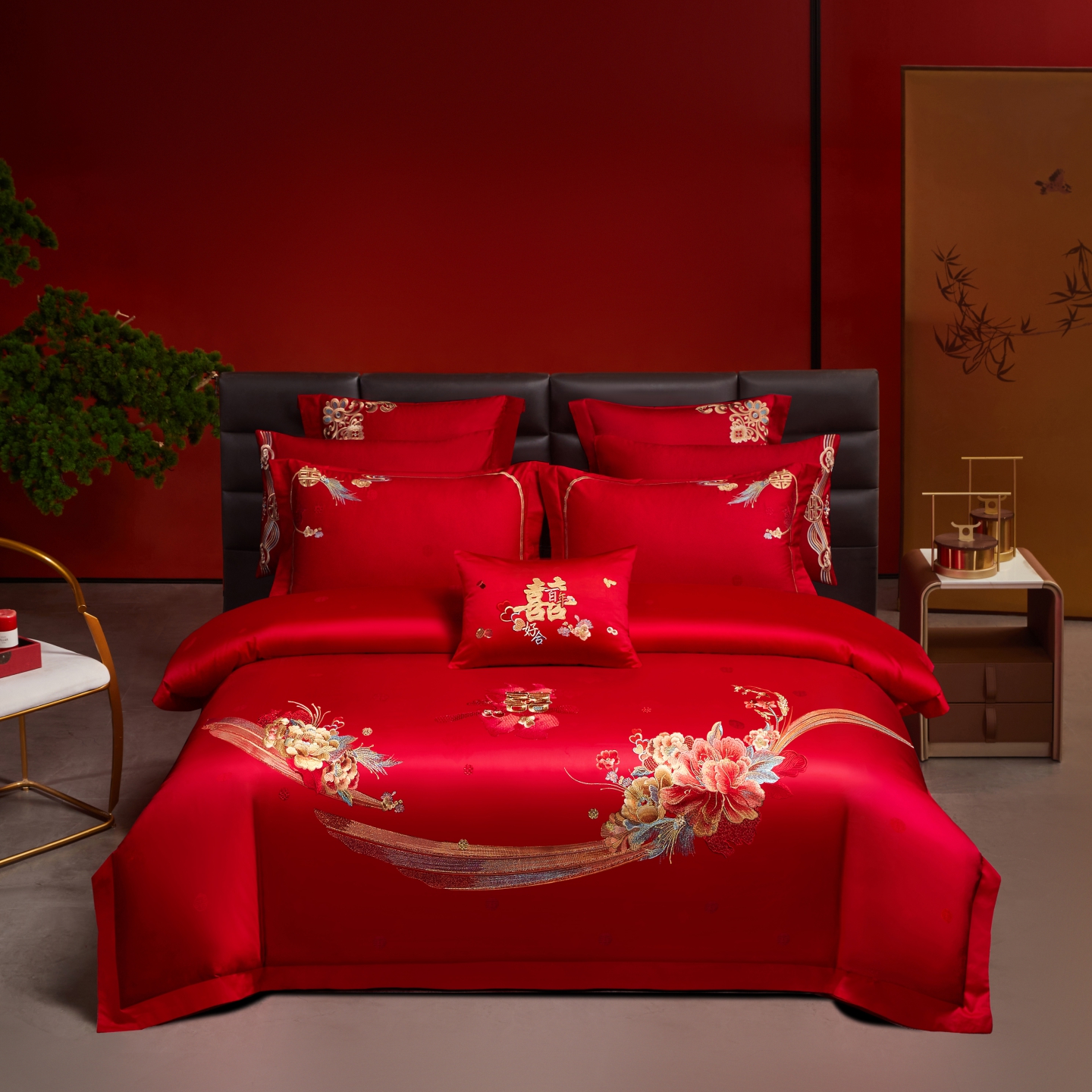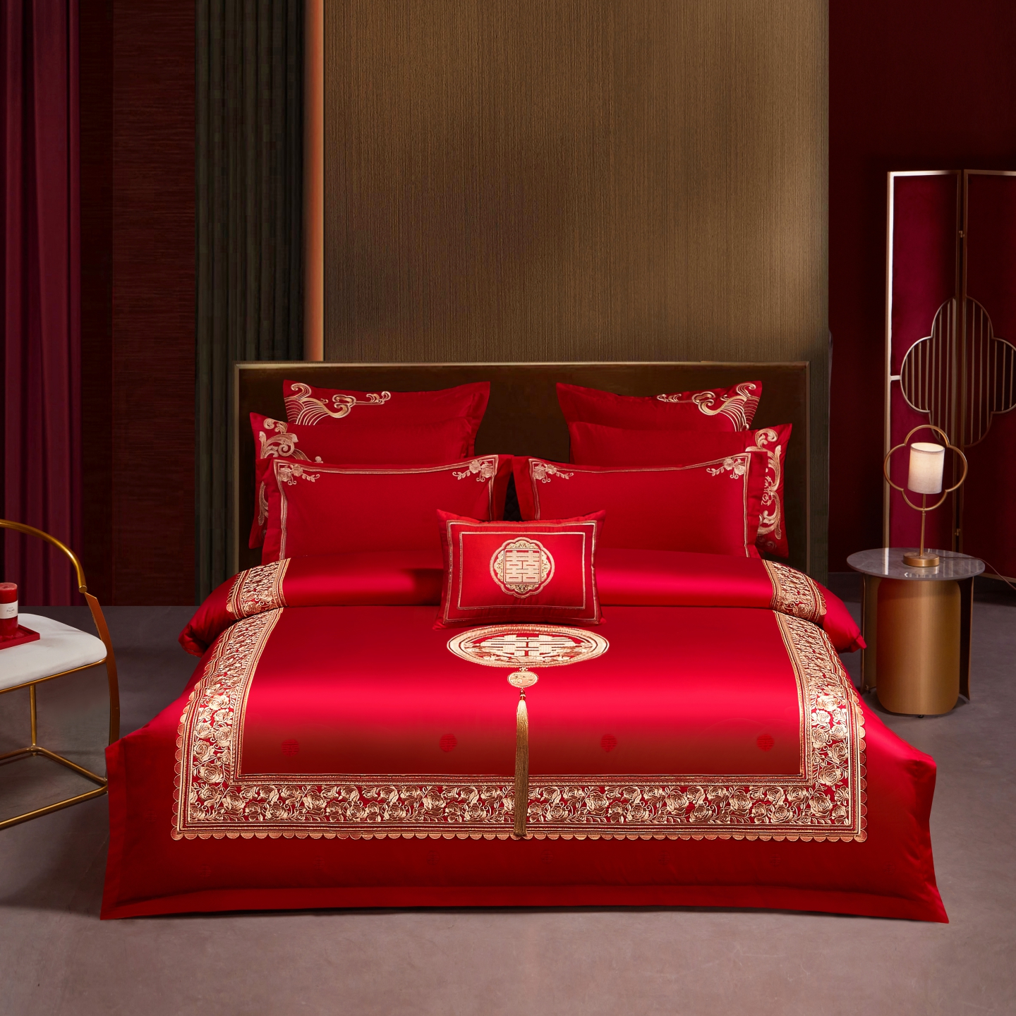 当前位置: 91家纺网 > 商品网购 > 床品套件 > 四件套 > 婚庆四件套 > 宏羽纺家纺 2025新款高支高密纯棉婚庆系列四件套 浪漫相随