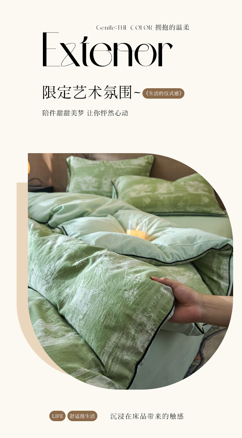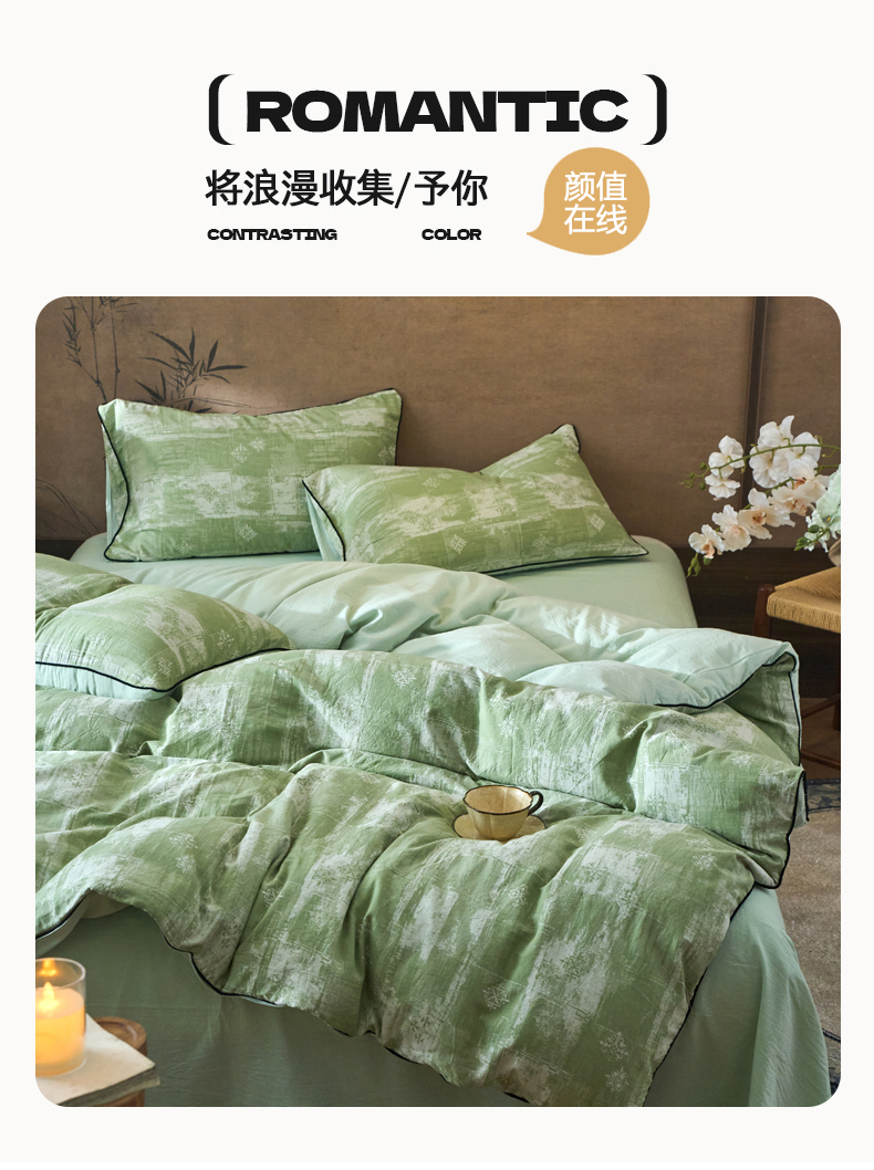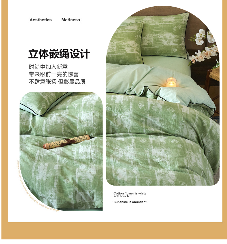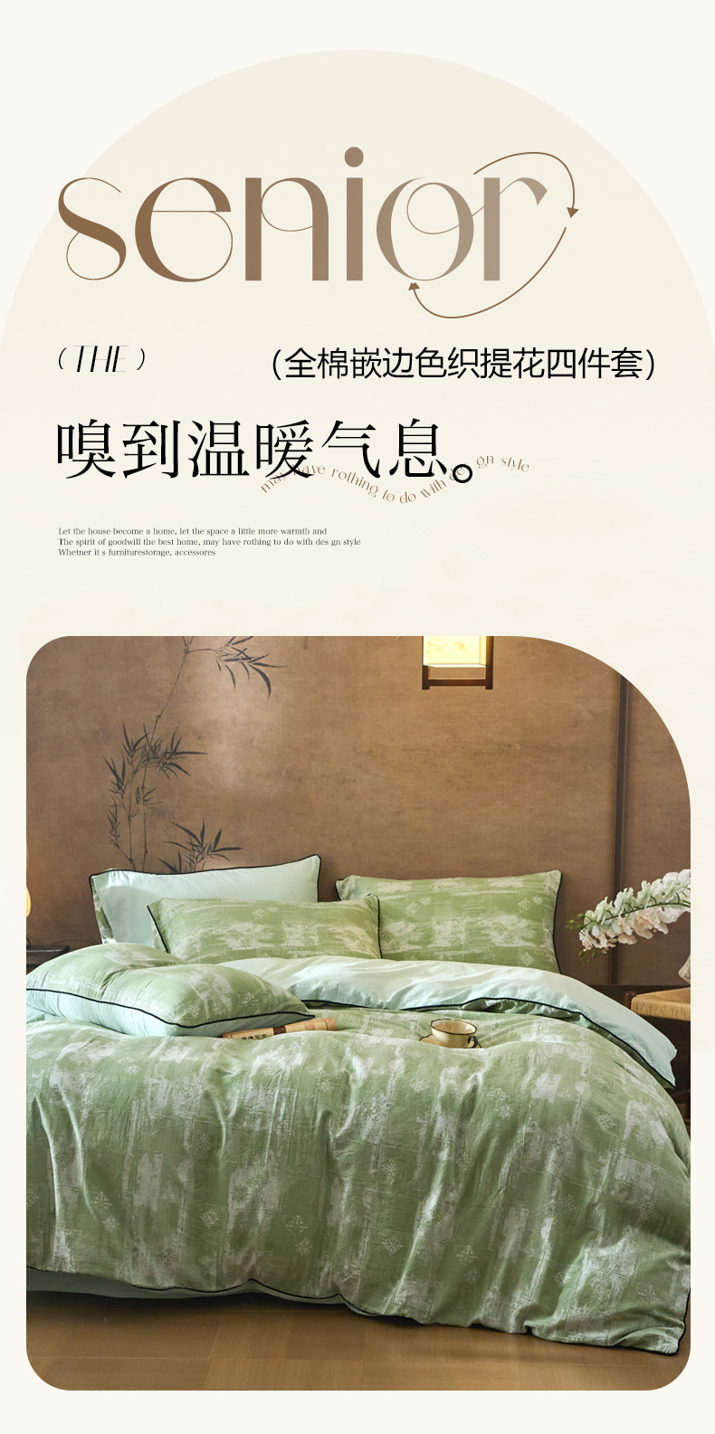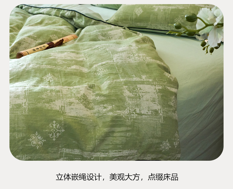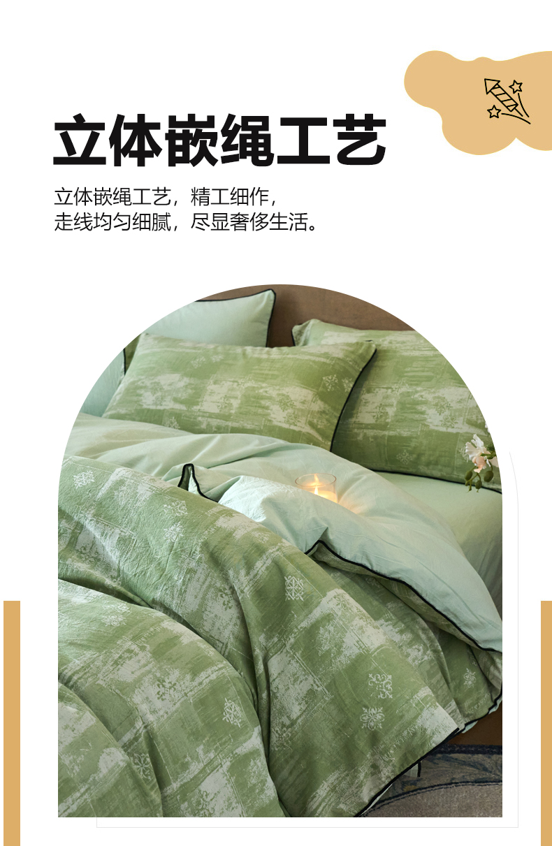 当前位置: 91家纺网 > 商品网购 > 床品套件 > 四件套 > 全棉普通四件套 > 兰紫橙家纺 2025新款全棉纯棉嵌边色织提花四件套 光芒-草绿